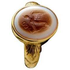 The gold ring mount is of D-shaped cross-section and a hollow 22K gold construction. The ring has a fantastic smooth silk-like texture when worn. It remains in good overall condition and the intaglio is very secure in the mount. The gold mount dates to the late 18th to early 19th century, and the shape is inspired by ancient Roman ring...
