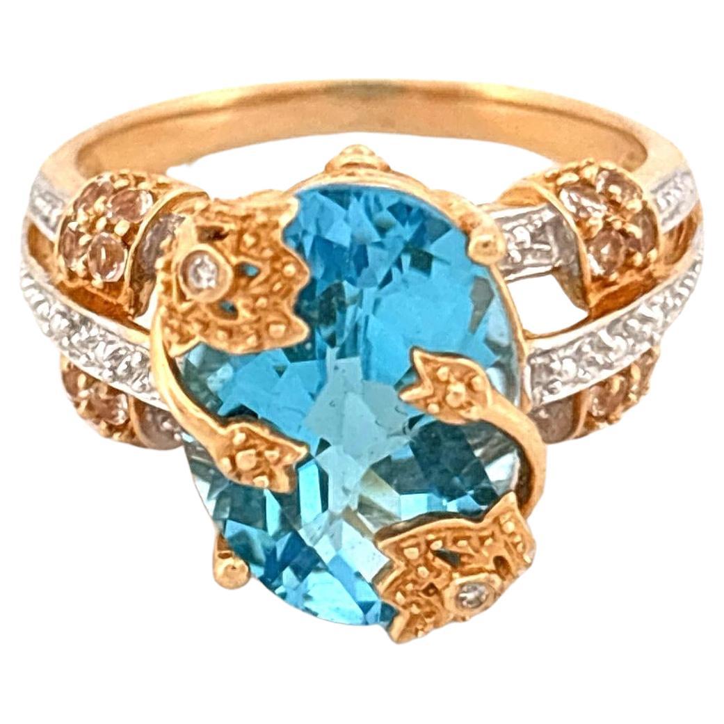 The stone is from Brazil and is just exquisite. The ring is a size 7.75. The stone is a Baguette cut Swiss Blue Topaz and is 15.70 carats. It measures 18 x 15 mm and is set in a gor...