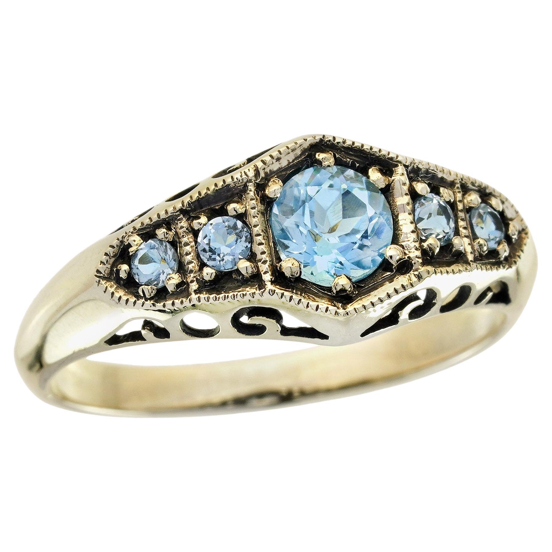 20th Century Thai Art Deco Blue Topaz Rings