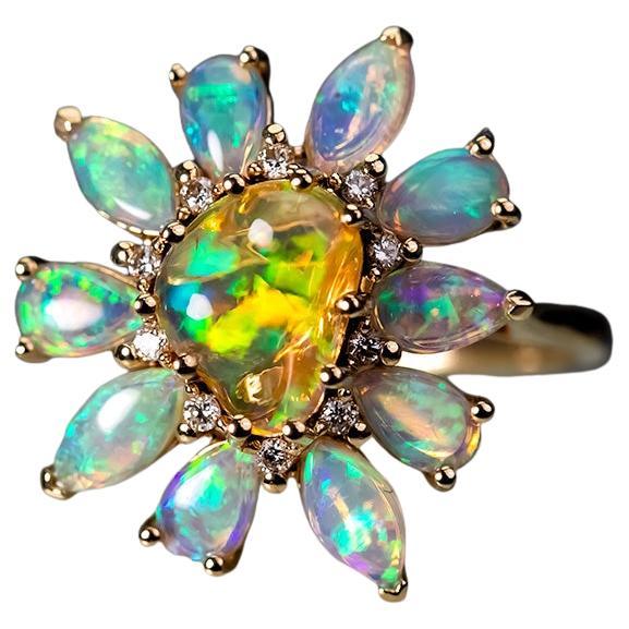 Diamond, Emerald, Opal, Fire Opal, 18k Gold, Silver