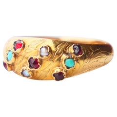In more “recent” times, colored gemstones like garnets, rubies and sapphires, were widely used in Georgian rings and other Georgian jewelry alongside pearls. Later, garnets were fairly ubiquitous in Victorian jewelry. With respect to the latter, Romantic period jewelry was a celebration of the young monarch’s love, and the era's REGARD and DEAREST rings were particularly popular. The “G” in REGARD rings, the equivalent of the modern-day engagement ring, implied garnet.