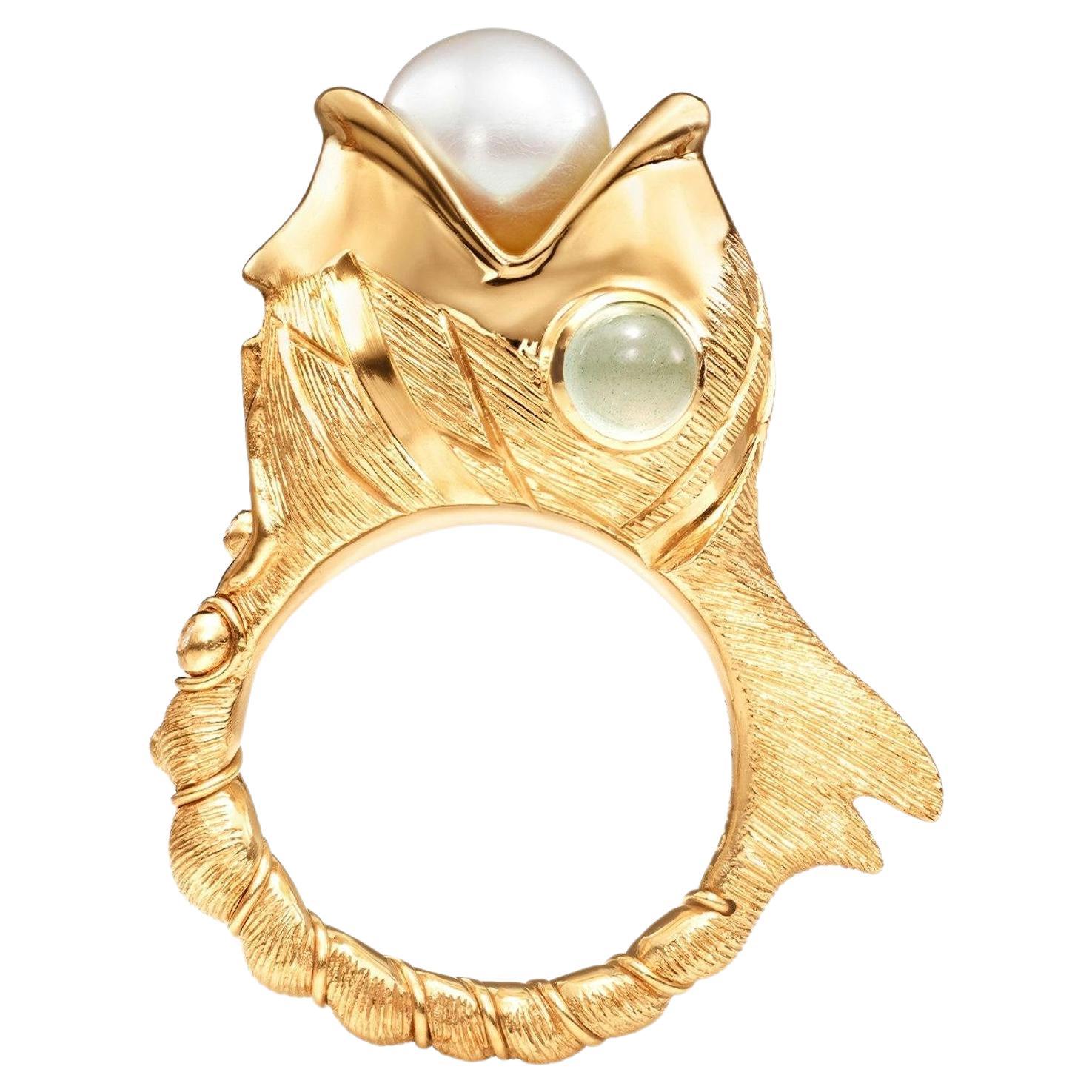 Antique Art Nouveau Ring Iris Flower Buds 18 K Yellow Gold Oriental Pearl France