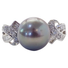 Estate South Sea Pearl & Diamond Platinum Ring 15.2mm