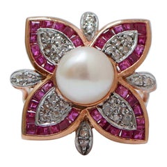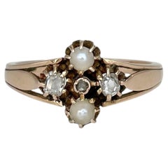Antique 15ct Gold, Victorian Diamond Pearl Daisy Cluster Ring, Circa 1870