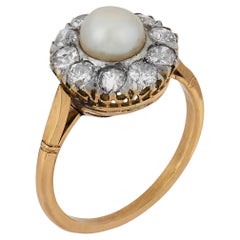 Antique Pearl Daisy Cluster Ring 15ct Gold Circa 1870 This is a Victorian cluster ring crafted in 15ct gold, dating to around 1870. At its centre sits a modest old-cut diamond, en...