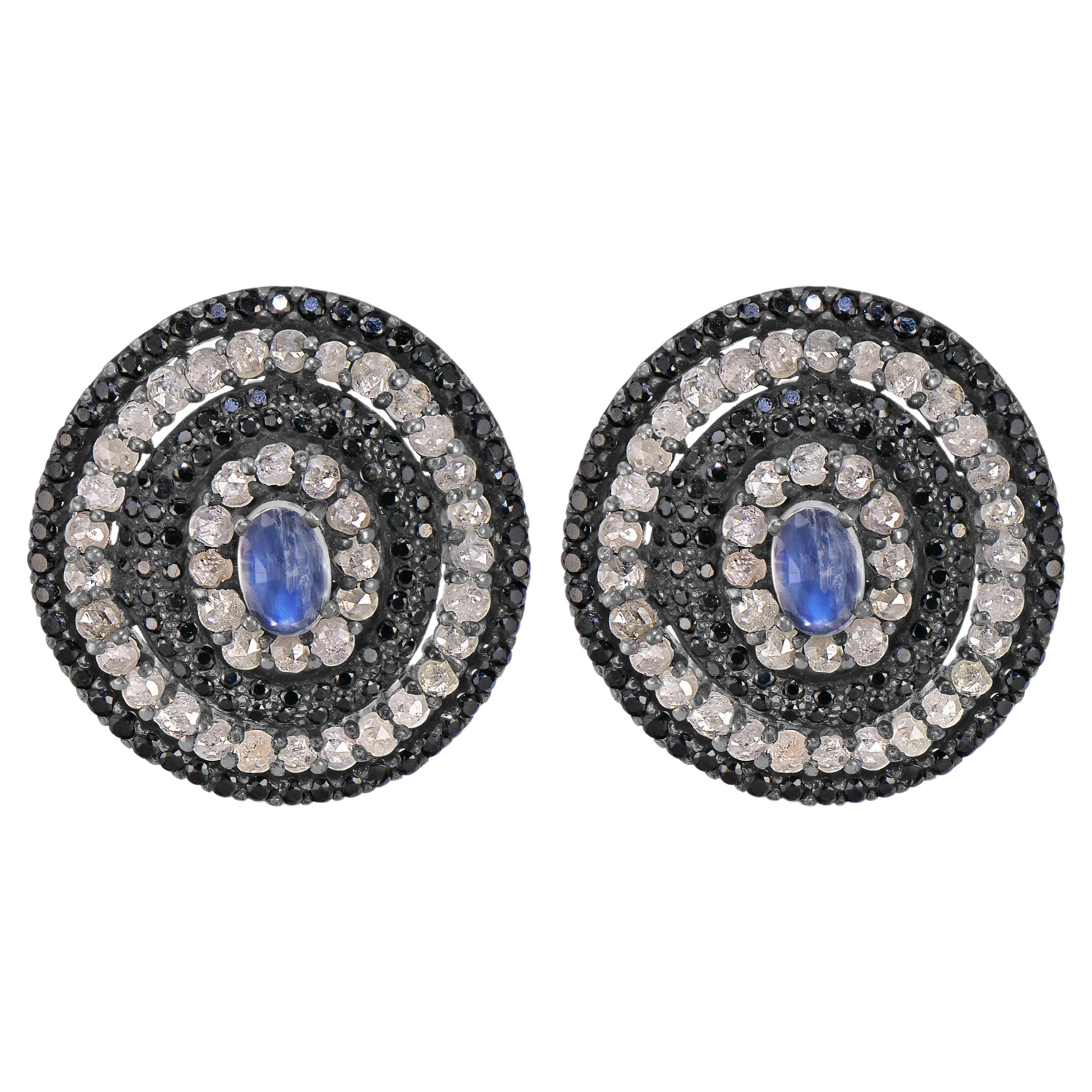 New 4.08 Carat Blue Topaz & Diamond Cut Sapphire Dangle Sterling Earrings