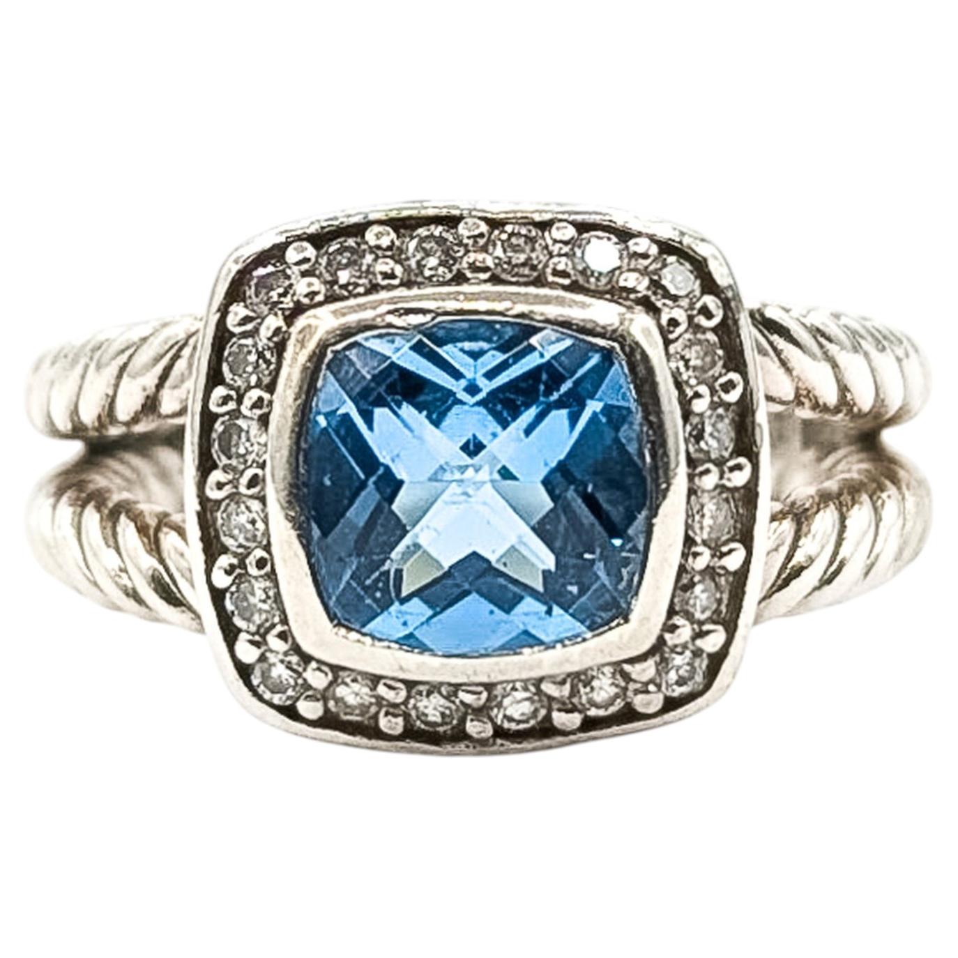 This ring is just gorgeous and has a lot going on. It starts with a beautifully cut baguette Swiss Blue Topaz that measures 16 x 10.5 x 8 mm and totals 18.88 carats. On the side of...
