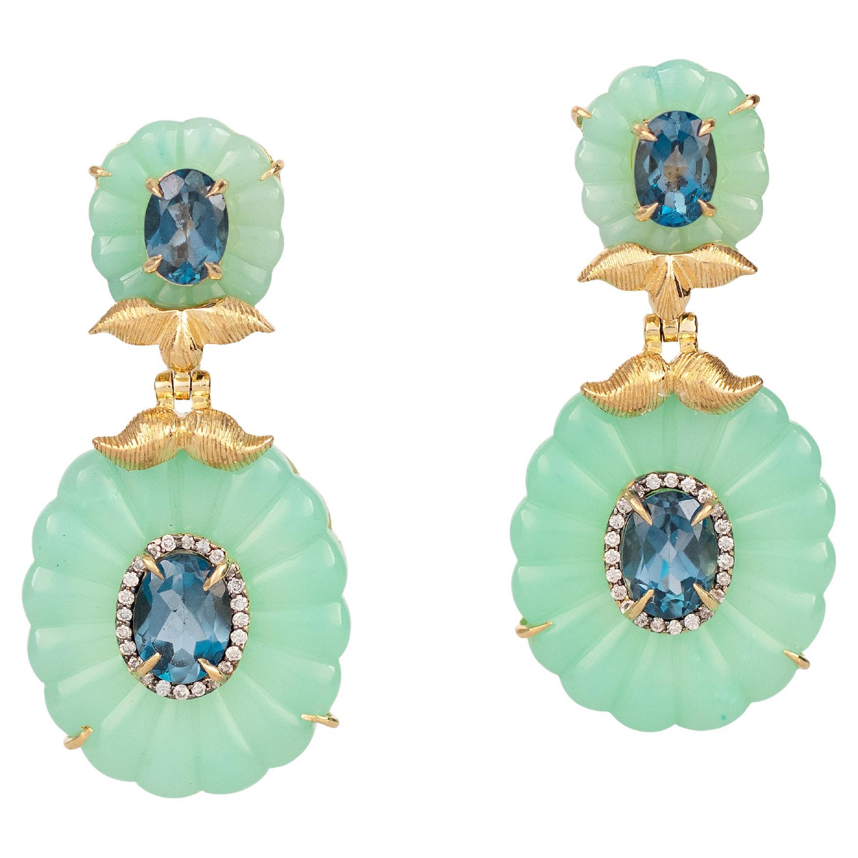 Diamond, Topaz, Blue Topaz, 18k Gold, Yellow Gold