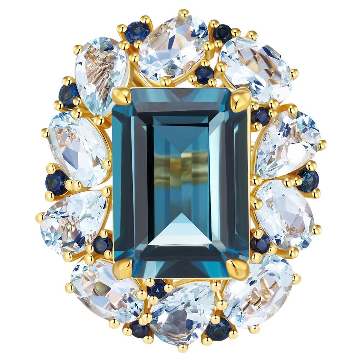 Quartz, Topaz, Blue Topaz, 18k Gold, Yellow Gold