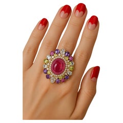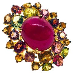 Ruby, Sapphire, Tourmaline, 18k Gold, Silver