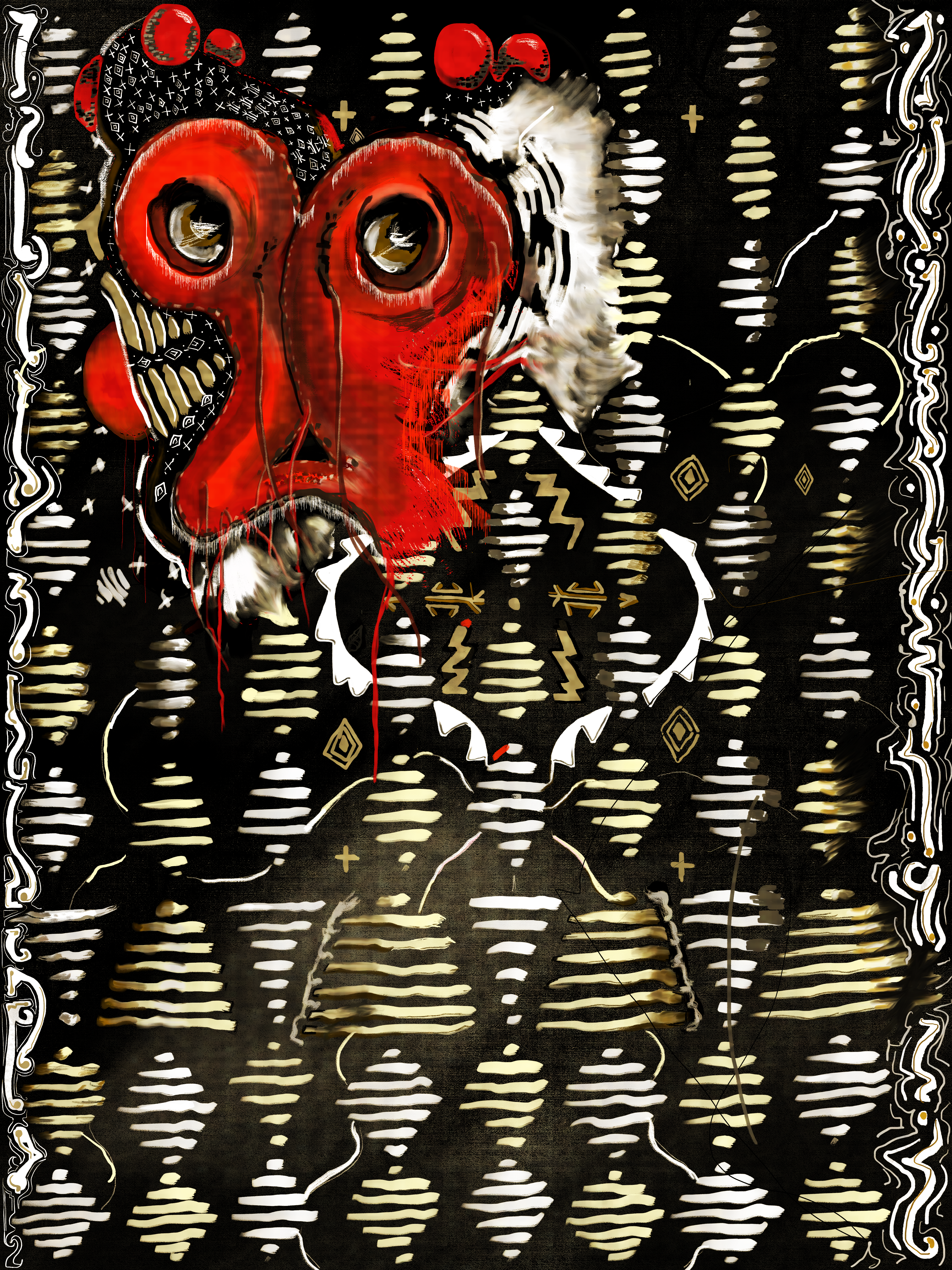 Texture, Berber Symbols of protection, and strength shielded by your protector of the Balaclava. Each part is beauty and understanding, that everything and every human comes from beauty. Even in the darkest of paintings.