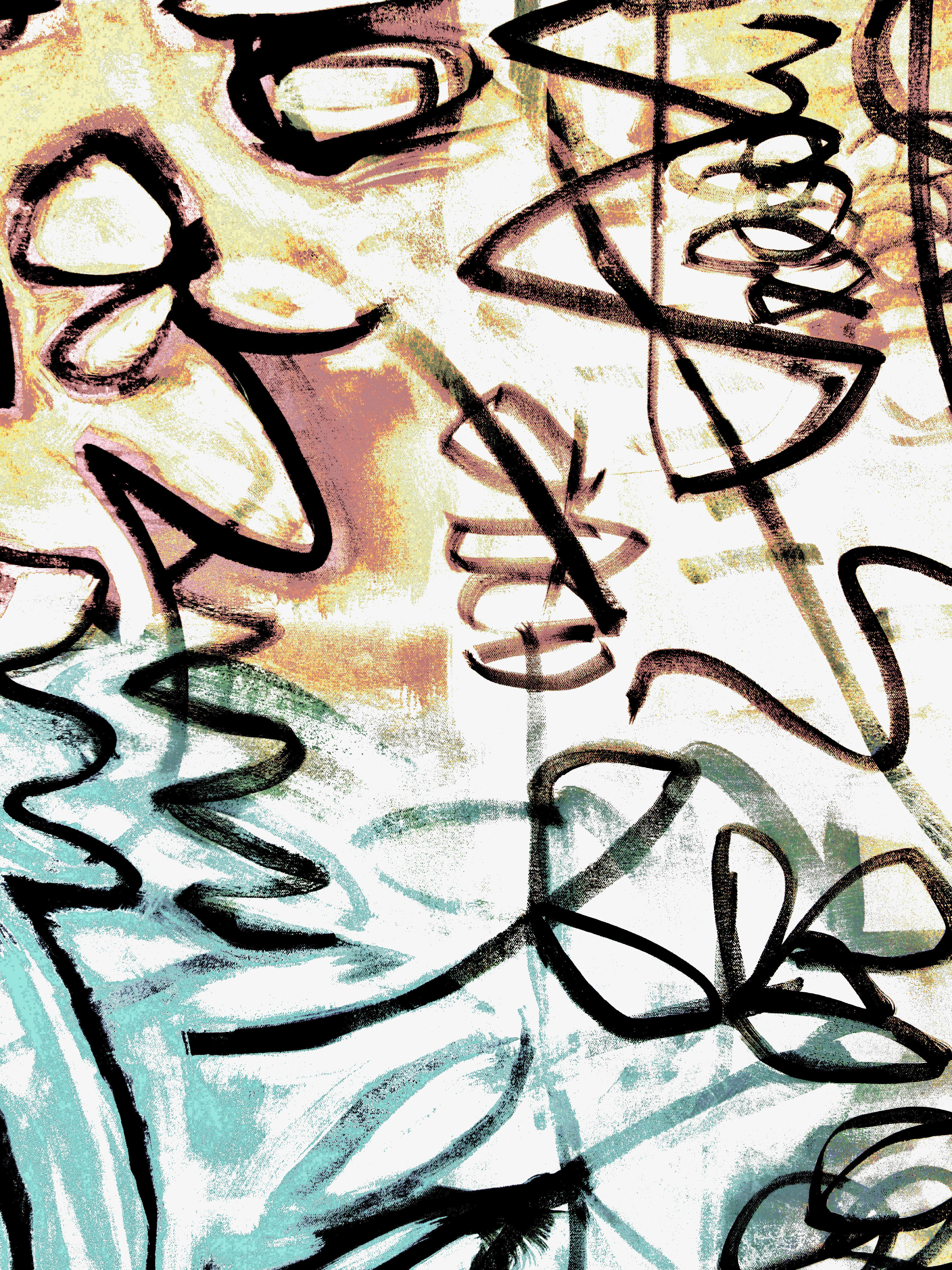 Exploring patterns and rhythms in nature, a tangle of vines, leaves, and blooms twines upward to a sky full of floating and flying things. Mingled roots burrow deeper and deeper in search of nutrients and water. This artwork extends that sense of how it feels to be immersed in the natural world, vulnerable, yet uninhibited and fully connected.