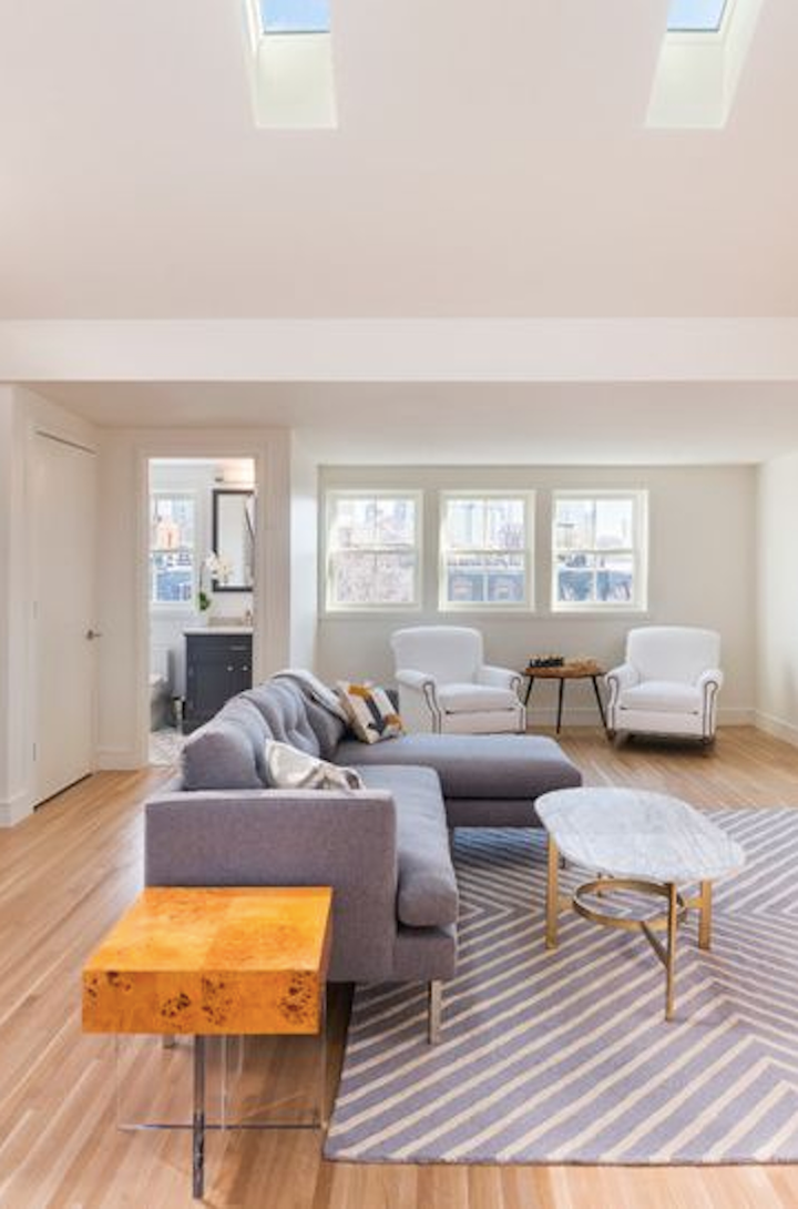 PEG Properties & Design, the true masters of new construction are please to introduce the Penthouse at One Hanson Street. Built by Kennedy Construction, this spectacular 2,775 square foot sundrenched triplex has a sumptuous master suite, 3 additional bedrooms, and 2.5 baths. This unit also features floor to ceiling windows, hardwood floors through out, state of the art kitchen with dual islands, balcony and roof decks have electric, gas and water, family room with vaulted ceilings and skylights flooding the room with natural light.