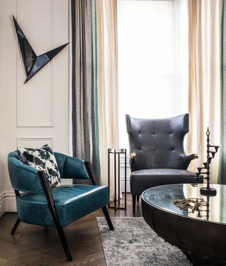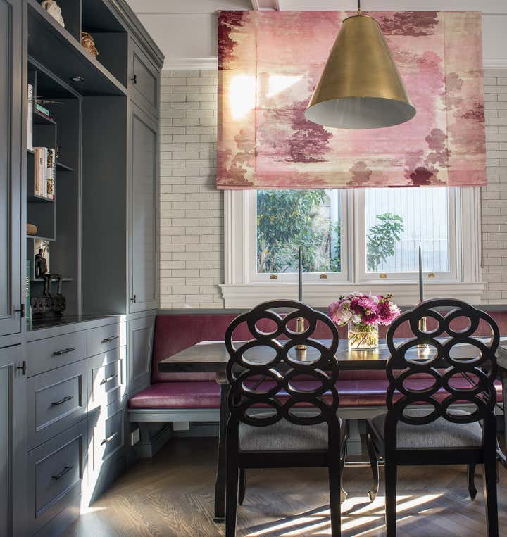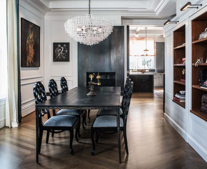 1870's Victorian reimagined with a gothic design. Moody colors, layers of texture and playful design choices create a space bubbling with energy.