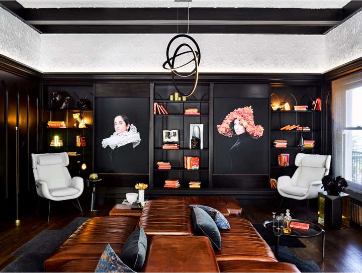 The library tells a story, a layered tale of dark and light. It is a study in contrast, an homage to classic and contemporary, a marriage between old and new. We call it the Bibliotheek. The bespoke Edwardian architecture is infused with modern flair, old-world elegance that feels fresh, current, and inspired. Illuminated portraits by Kobus and Rembrandt are set against a canvas of rich charcoal hues, traditional friezes and crisp, white plaster. Martin reinvents the portraits as one-of-a-kind light boxes, printed on silk and lit from within. Golden halos of light are suspended above. The bibliotheek can be enjoyed as a lounge for cocktails, as an intimate tete-a-tete by the fire, or as a literary retreat in peaceful solitude.