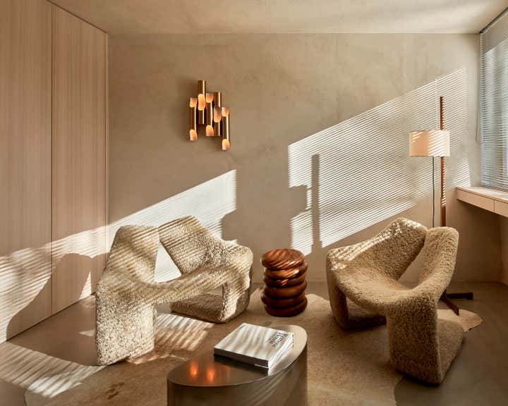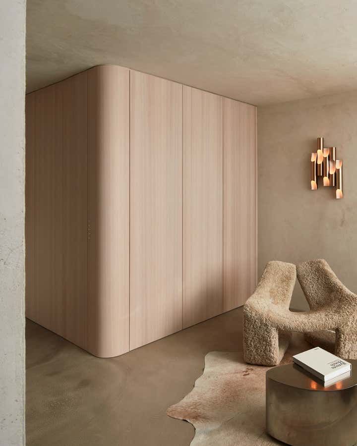Distinctive of the .PEAM look are uniquely selected vintage objects, such as the wall lighting and the restored fur armchairs from the sixties. An instant breath of character and soul into the small space. Handcrafted wooden accessories and furniture, like the .PEAM SLIDE Table add a touch of warmth to the atmosphere.