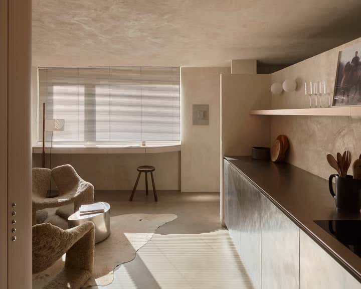 Our foundation: monochrome materials in natural colors, like the lime plaster used on all walls and ceilings. To accompany, an abundance of wood.