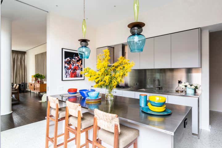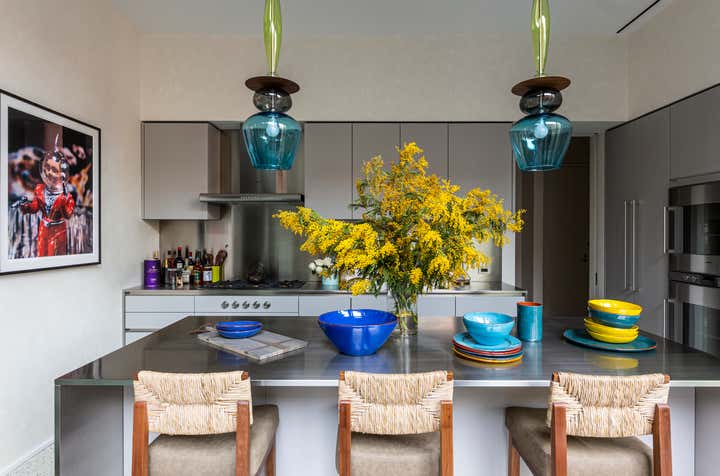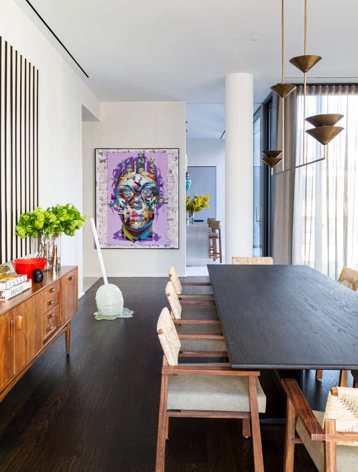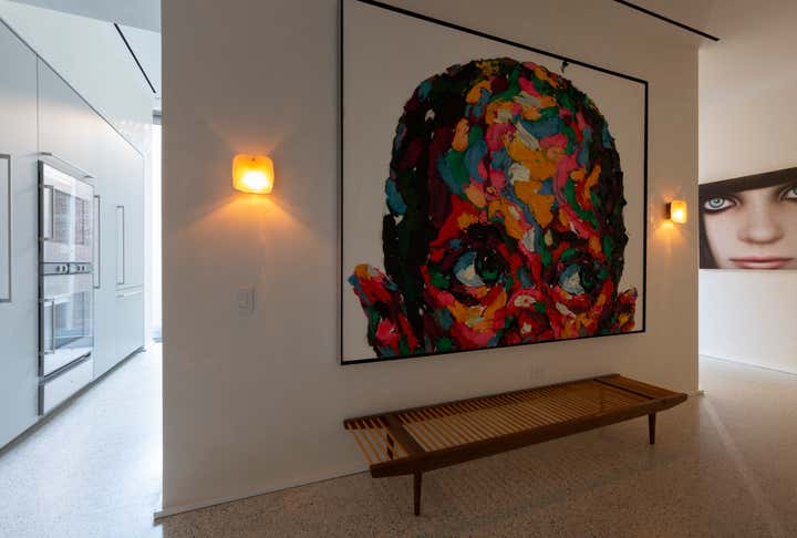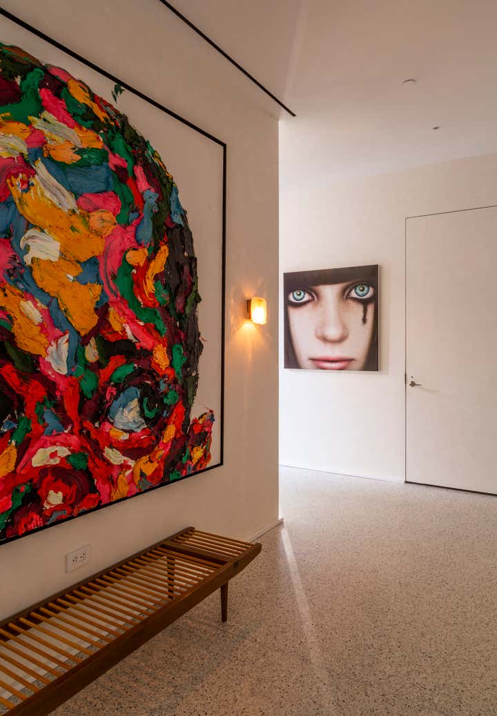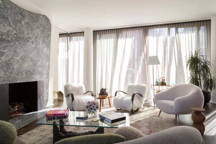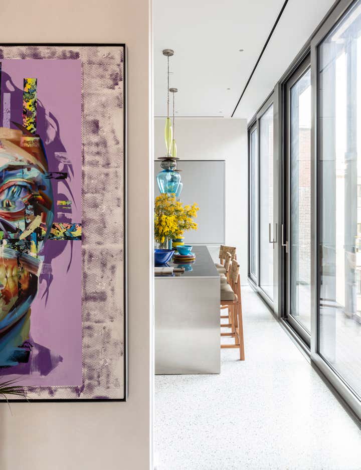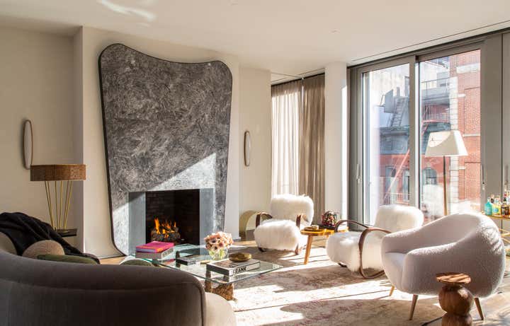 42 Crosby by Seldorf Architects is an intimate condo building on the historic soho cobblestone street. A modern day interpretation of a classic cast iron soho loft with Dark Oak flooring mixed with Terrazzo, surrounded by floor to ceiling glass sliding doors allowing for a fluid transition from indoor to outdoor living, custom stainless steel Boffi Kitchens, elegant Bardiglio and Thassos marble in the bathrooms, custom plaster work inspired by Jean Michel Frank using bronze and mica powder. A custom 10 foot fireplace with Grey Ice Onyx pays homage to Gio Ponti and centers the room of art deco and mid century French pieces. Our client boasts a vibrant modern art collection of works from Justin Bower, Kwang Ho Shin, Desire Obtain Cherish, Machiko Edmondson, Hisao Hanafusa, and Luke Michael Todd.