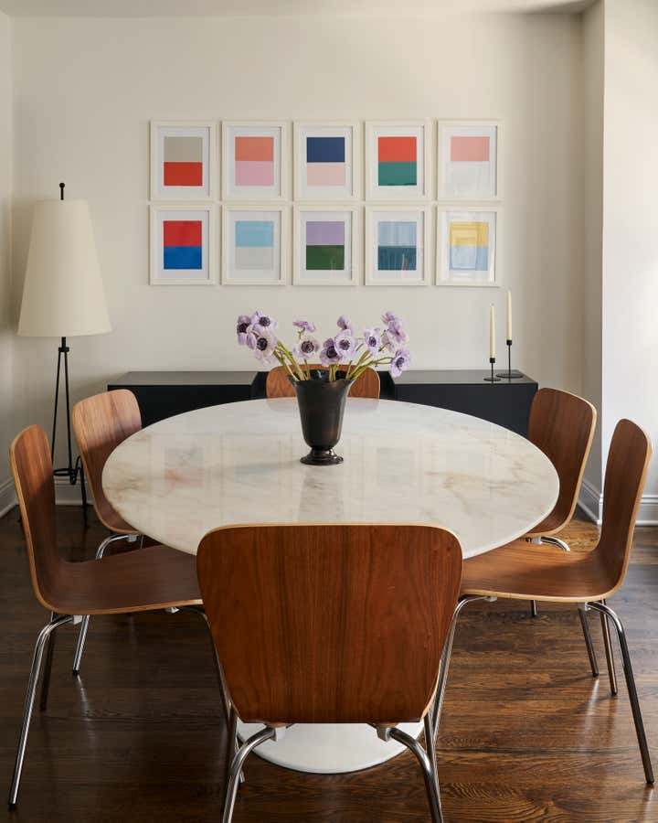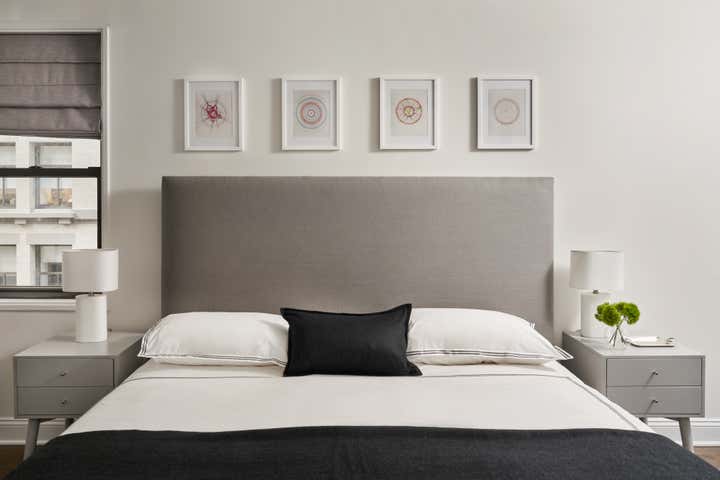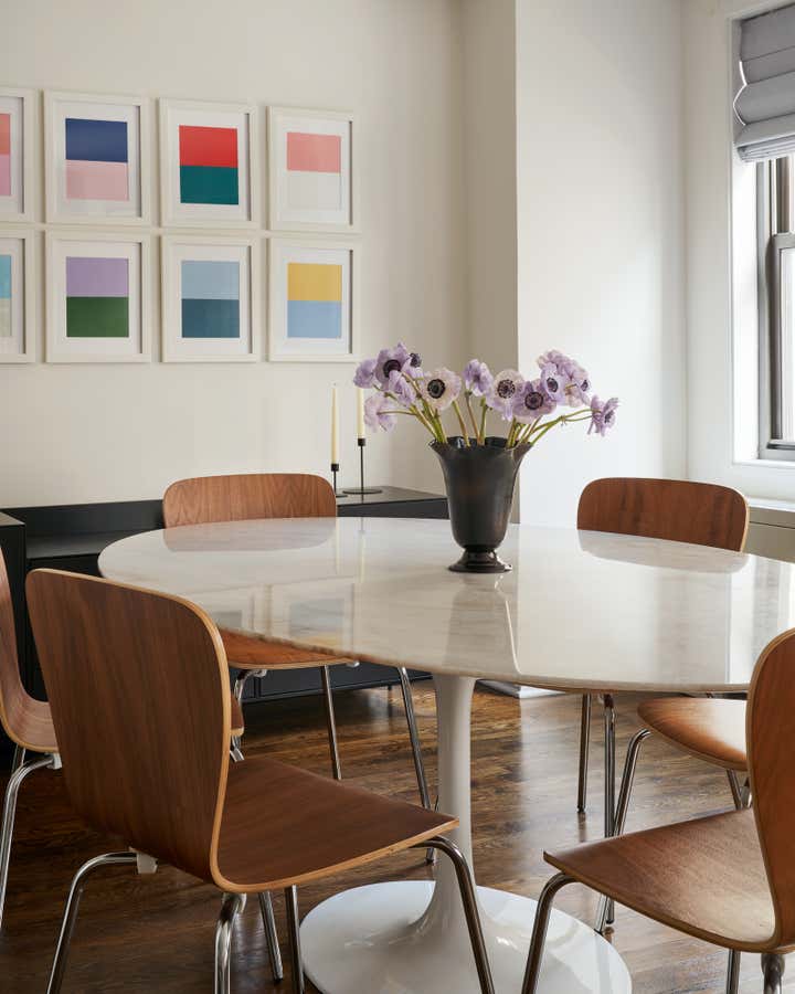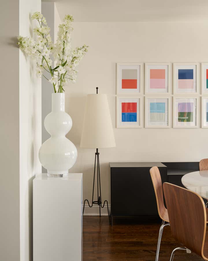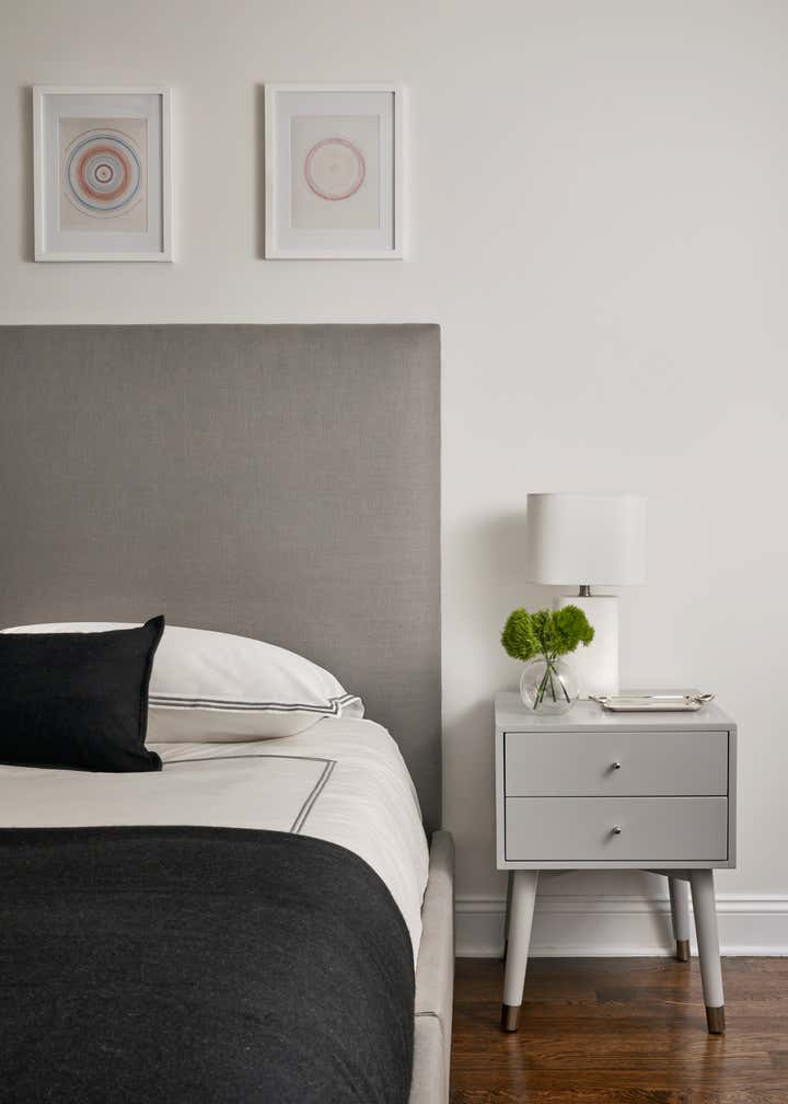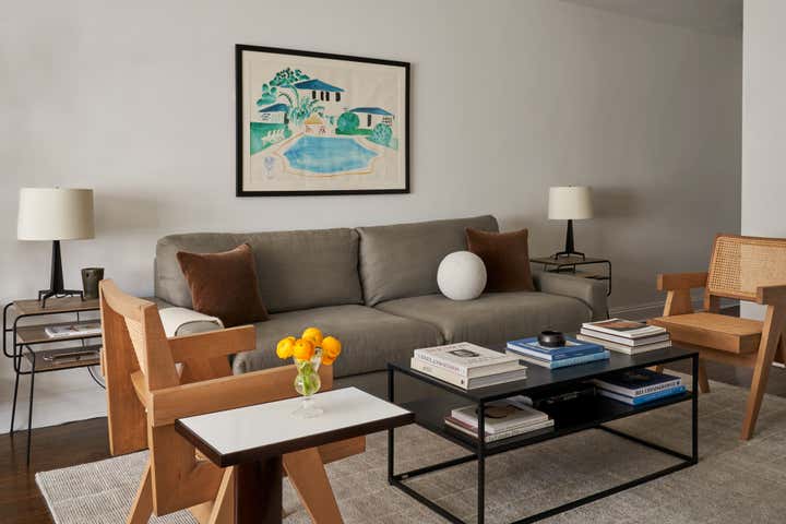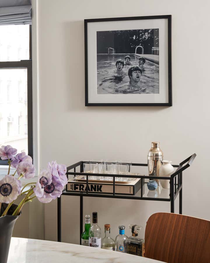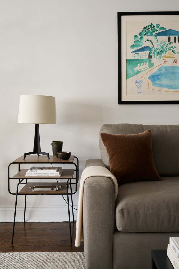 This lower 5th Ave apartment, a stones throw from Washington Square Park, was designed for a young couple who love art and design. The idea was to create a space that has clean lines with neutral tones and to add interest through texture. Color was brought in through art and accessories, with a David Hockney lithograph serving as the centerpiece of the apartment.