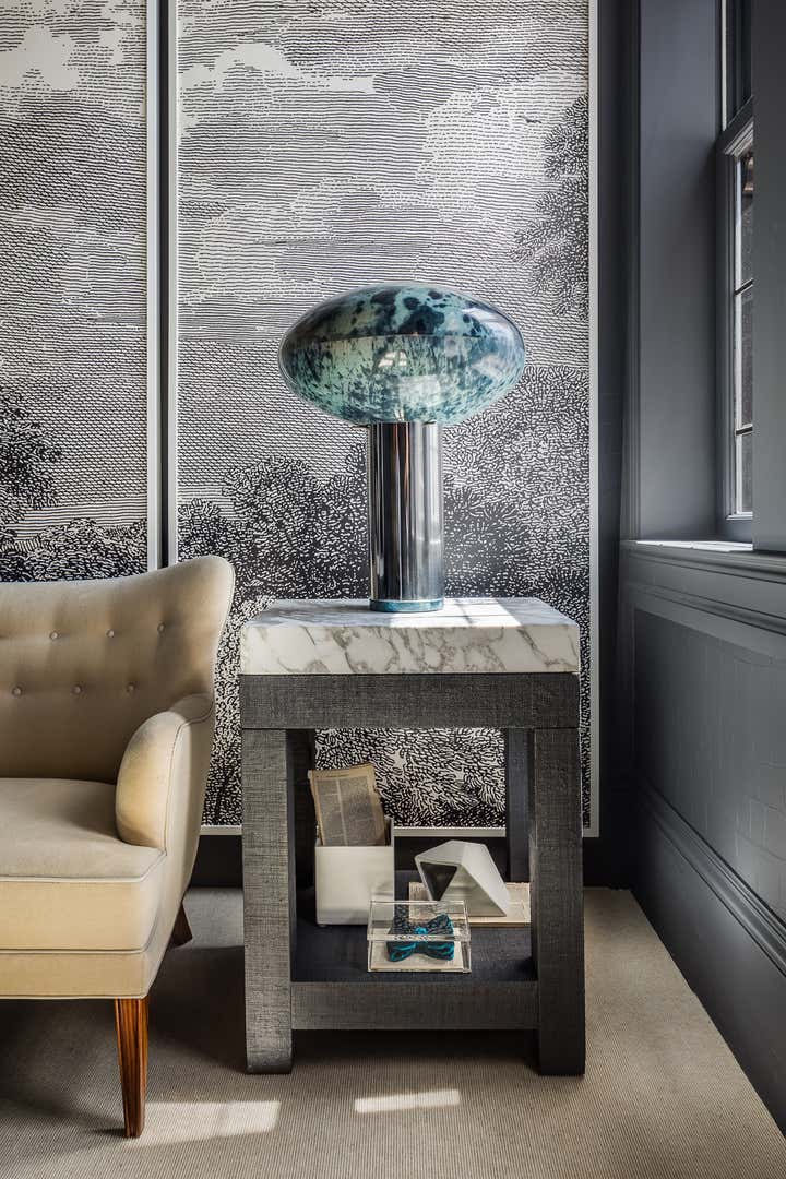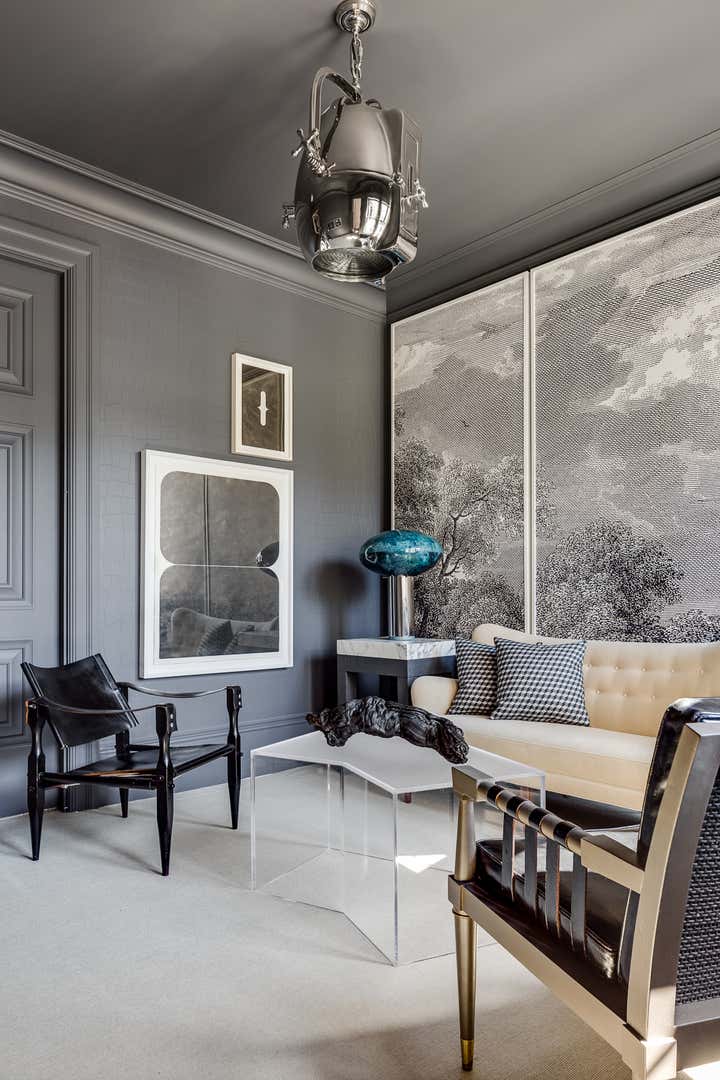 For the 2015 edition of the San Francisco Decorator Showcase we were awarded the The Gentleman’s Private Lounge. Inspired by Sargent's iconic painting 'Dr. Pozzi at Home' we imagined the private dwellings of a 21st century gentleman. The main focal point in this room is the wall treatment: an oversized mural composed of a 19th century Acadia arboretum etching. The room showcases an array of vintage furniture and avant-garde 21st century furniture.