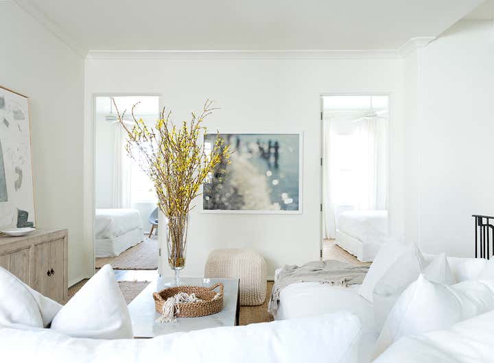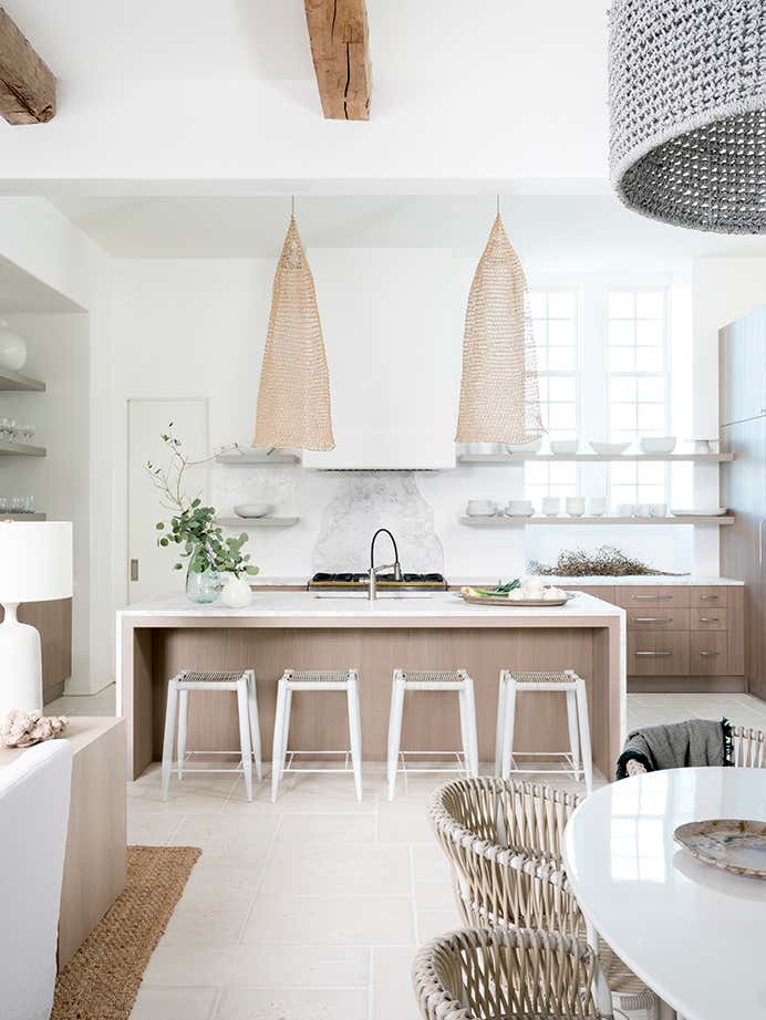 Past the gracious but stalwart Dutch Colonial facade, the home looks inward: all the ground-floor rooms open onto a beautiful intro courtyard, completed with a pool. Organic touches echo the indoor-outdoor vibe.