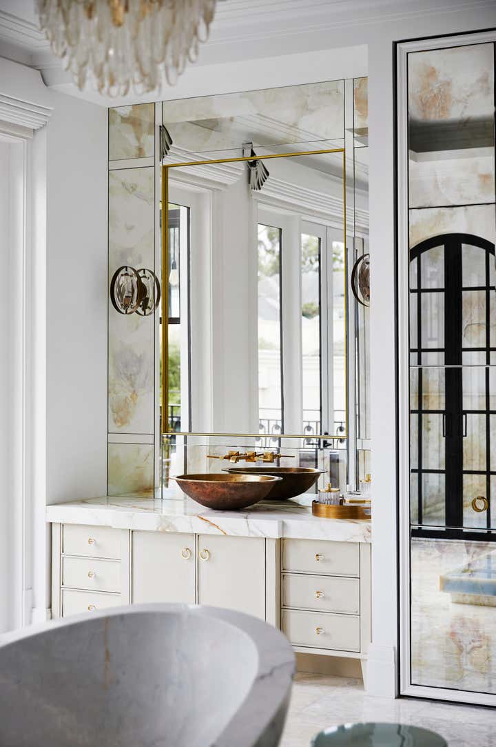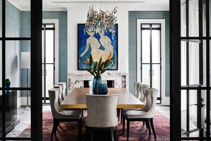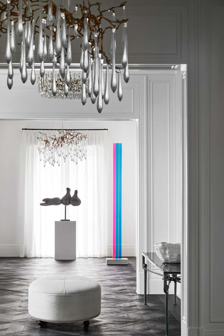 Selected views into a residence reminiscent of stately, turn-of-the-century Victorian homes, but with a stylistic departure that both blends and offsets the suggested austerity. The result is a quiet but shameless fusion of neoclassical Parisian detailing, contemporary New York eclecticism and an undertone of Hollywood Golden Age glamour.
