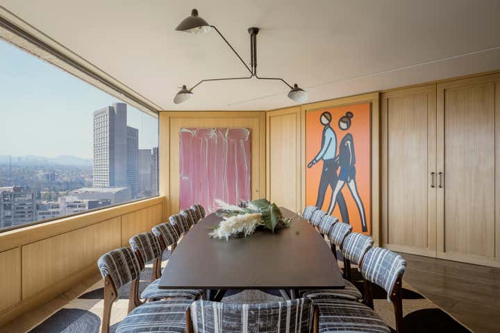 In the heart of Mexico City this 5,200 sq ft penthouse is the perfect space to display the owner´s art collection. This masculine space is filled with color, textures and amazing views of the city. Artwork by Otto Zitko, Stanley Whitney, Gabriel de la Mora, Aldo Chaparro, Pedro Friedeberg among others gives this project a unique feeling. Furniture by Eero Saarinen, Warren Platner, Christian Liaigre and CasaMidy. All rugs are designed by Sofia Aspe and handwoven in Oaxaca, Mexico.