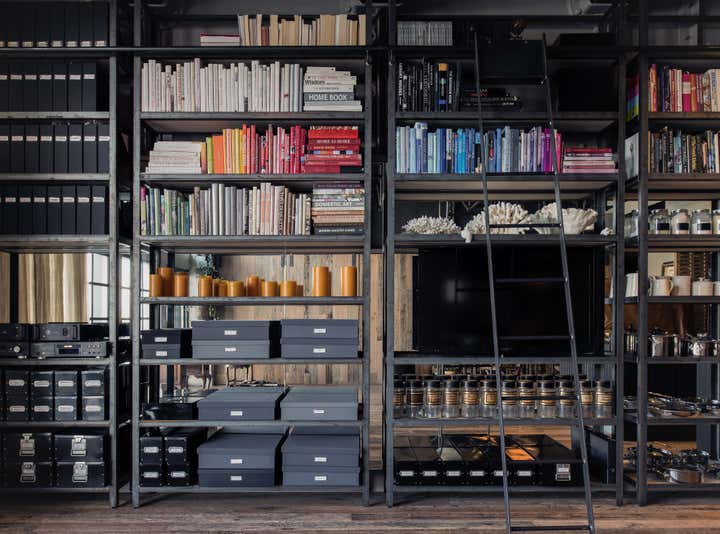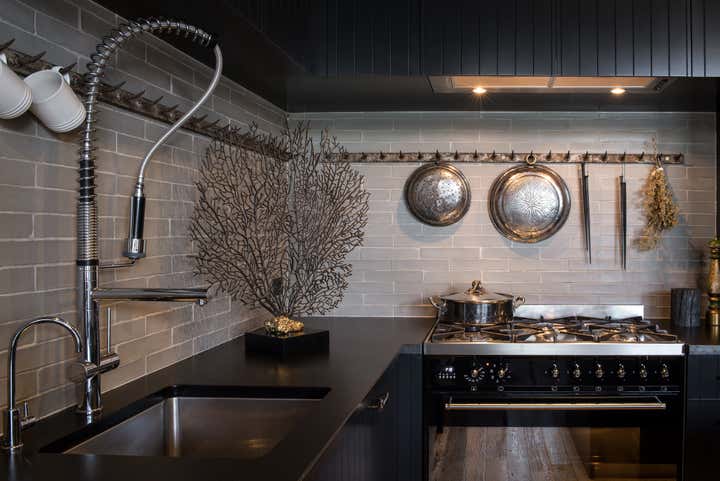 The goal for Stewart + Stewart was to connect the interior of the apartment with the historic in the central atrium of the historical wharf. Repurposed to create the essence of a working wharf seamlessly integrated with modern living. Grey lustres, raw steel, recycled oak flooring and warehouse doors with expansive steel shelving define the spaces. Offset with Belgian linens, over-scaled abalone shell pendants, vintage industrial lighting + decorative elements sourced globally. This has resulted in a unique and inviting home within a dramatic, historic industrial space.