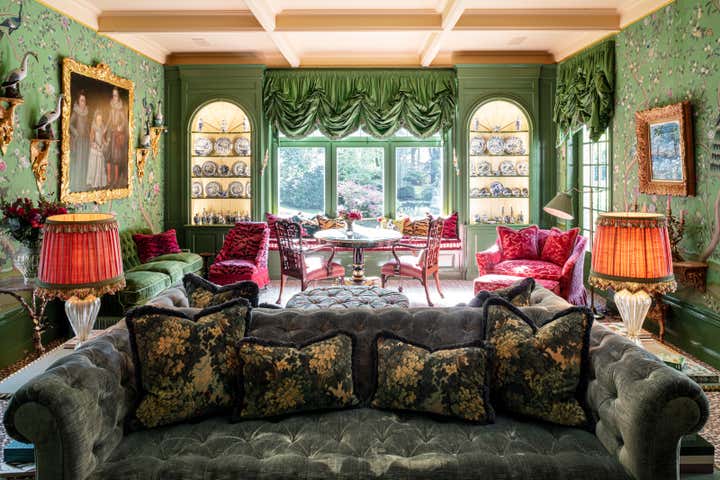 Inside this Tudor-style home on the outskirts of Antwerp, Belgium, a richly layered scheme with roots in traditional English decoration which confidently straddles the tricky balance between lavish and liveable.