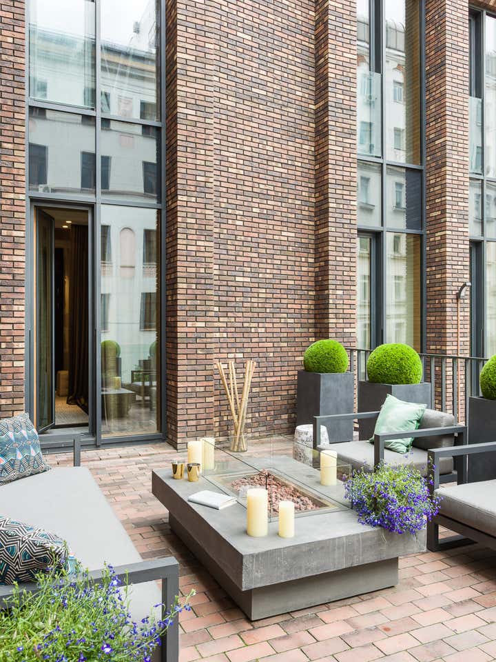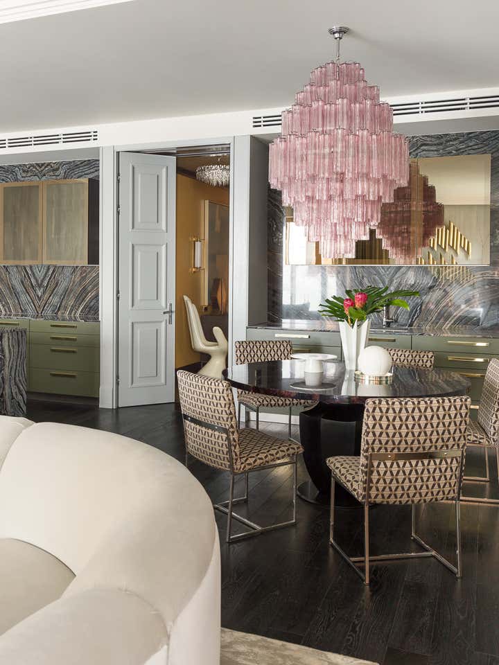 This bright, saturated, multilayered interior graces an apartment in central Moscow. Collectible 20th Century modernist furniture, contemporary art and American-scale proportions create a luxury atmosphere in the best traditions of Hollywood.