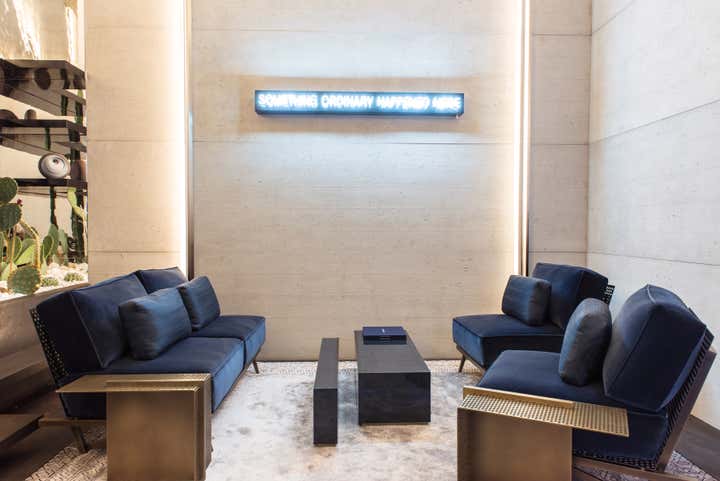 For the second edition of the AD Interiors Exposition at Iéna Palace, we created a furniture collection exploring new materials rarely used in the luxury industry: concrete, lava, and brass. Conceptualised as pieces that can be used either indoors or outdoors, the collection can be imagined in a variety of home contexts.