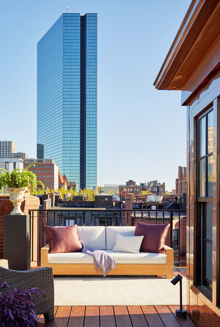 "Fine-tuned, skillfully curated," writes New England Home magazine. This gut renovation transforms a luxury brownstone with roof deck. Custom and restored iconic furnishings invite effortlessly elegant gatherings, while framing contemporary art and views.