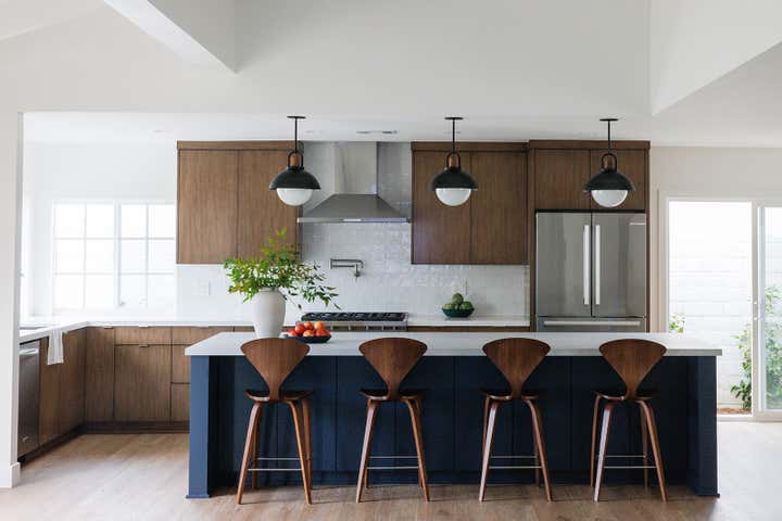 This project was a complete gut renovation. We knocked down walls, added rooms, and completely reimagined the space (indoors and out). We thoughtfully selected every detail down to the door hinges and baseboards. We kept the design true to the home's mid-century roots. We balanced a clean, masculine style with rich materials and layered textures .
