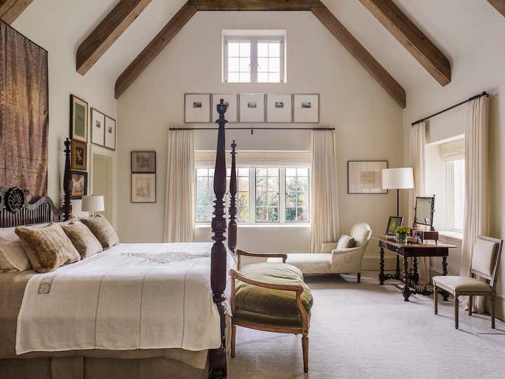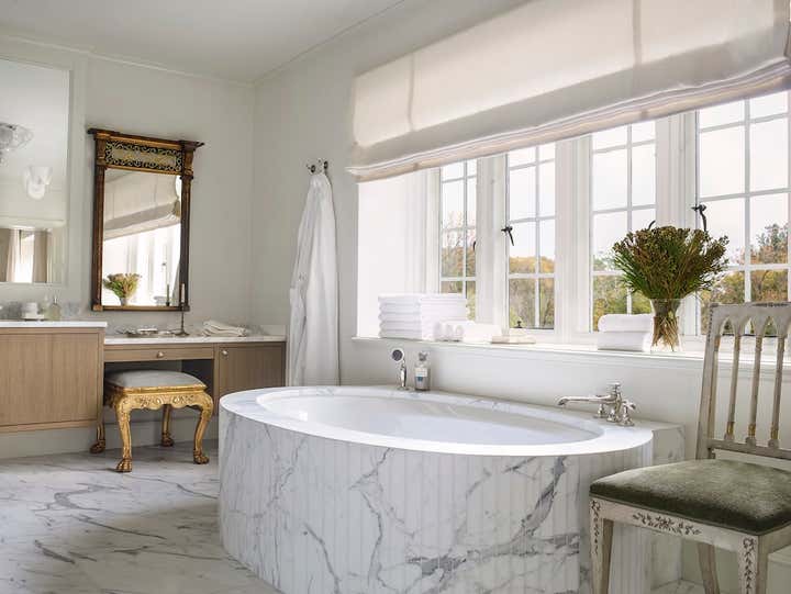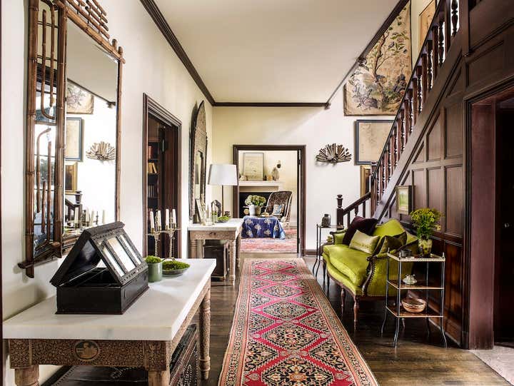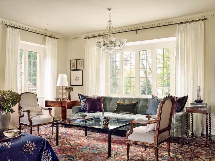 The home was originally the guest house of a larger, 38-room estate that is now the elite St. Timothy Boarding School for Girls. The property was designed and built by L.H Fowler, a classically trained architect, in the early 1900's When Hajj was brought on board for the major renovation, she sought to preserve the integrity of the original design while bringing it up to date for 21st Century living. The original layout needed considerable reconfiguration to accommodate contemporary needs, and Hajj, lauded for her masterful juxtaposition of colors and intricate textures, created an intriguing visual dialogue that shines throughout the project. The mixing of old and new in both architecture and interiors is purposeful, but not binding.