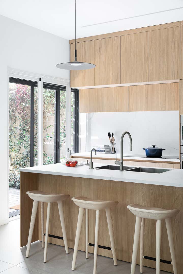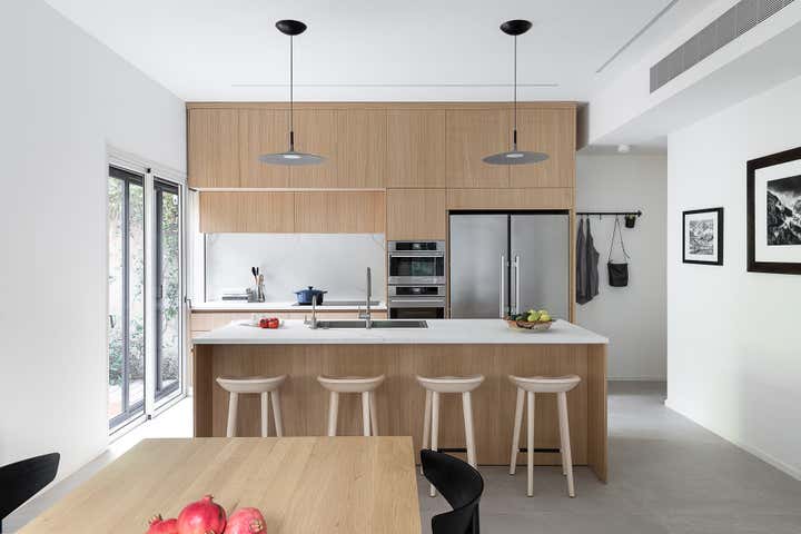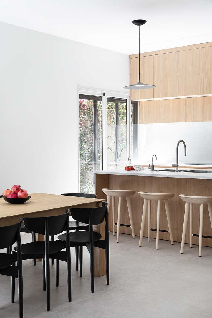 A landmarked building in the heart of Tel Aviv, one block from the Mediterranean Sea, undergoes a renovation. This refresh embraces historic bones and character, while creating a family-friendly space designed for gathering and comfort.