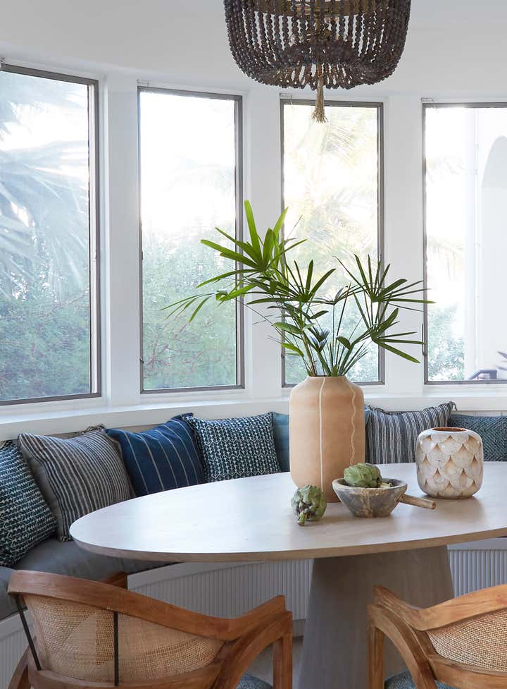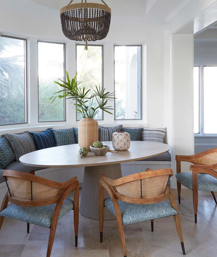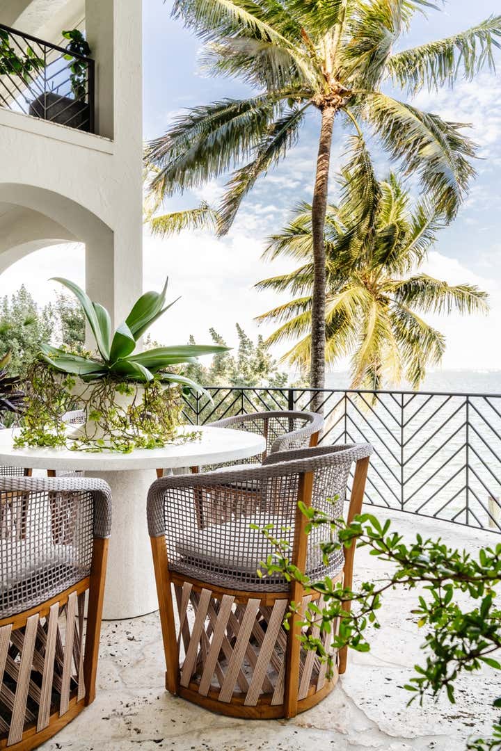 This waterfront vacation home overlooks Biscayne Bay and is within biking distance of Coconut Grove’s lush and charming downtown area. The client lives in Chicago most of the year and wanted a casual environment for his family and a venue for hosting 20+ holiday and sailing team guests. The scope was to create a completely outfitted vacation home, including furnishings, bed linens, towels, dishes, and cookware, with each guest room designed to anticipate every need. Imparfait Design Studio broke the mold of Miami Modern by creating a vintage Spanish hacienda style mixed with Mediterranean influences. Vintage rugs, lighting, and accessories, and lots of terra cotta and Moroccan zellige tiles create a lived-in ambiance. For the outside living area, which composes a third of the house, Imparfait worked with an architect, builder, and landscaper to add new railings, lighting, new doors and over 50 outdoor pots and plantings to impart an inviting and cozy boutique hotel vibe.