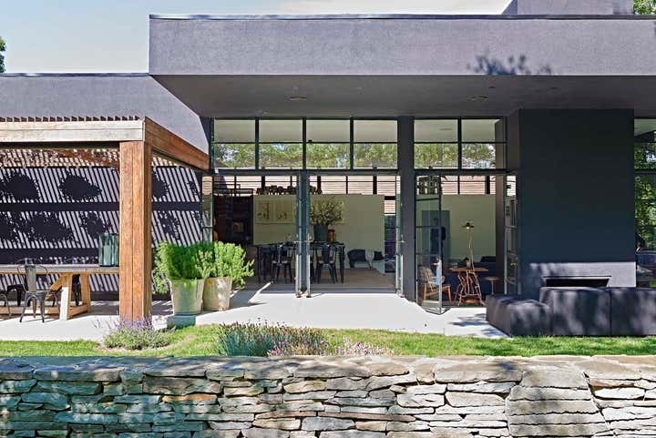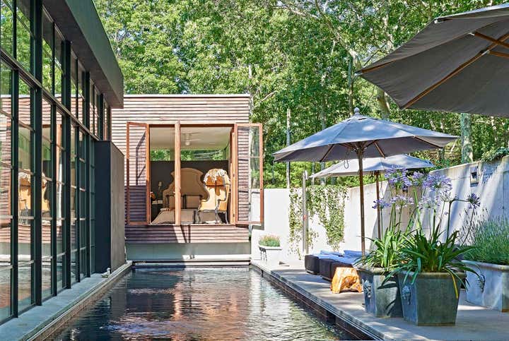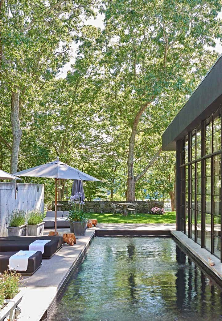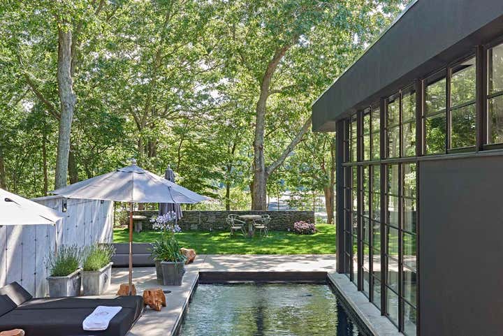 This residence is located in Sag Harbor, NY, approximately 90 minutes from NYC. Overlooking the Lilly Pond, the 4-bedroom residence is nestled within a small grove of trees with a very rich bio-diversity.