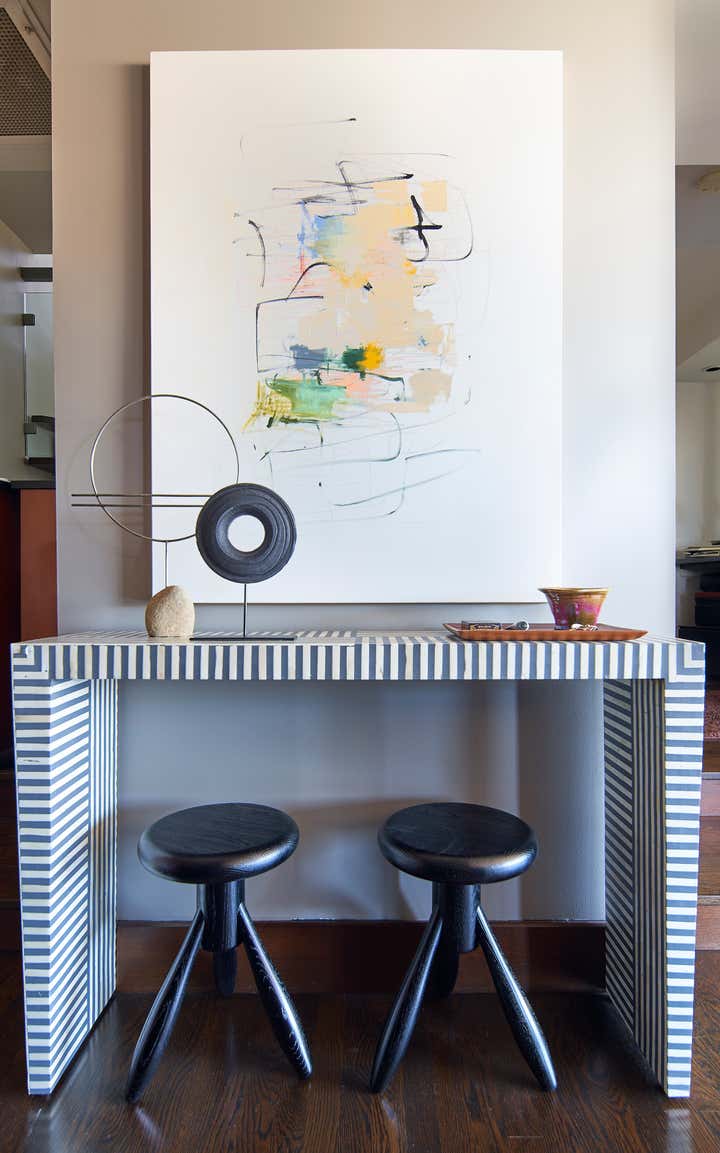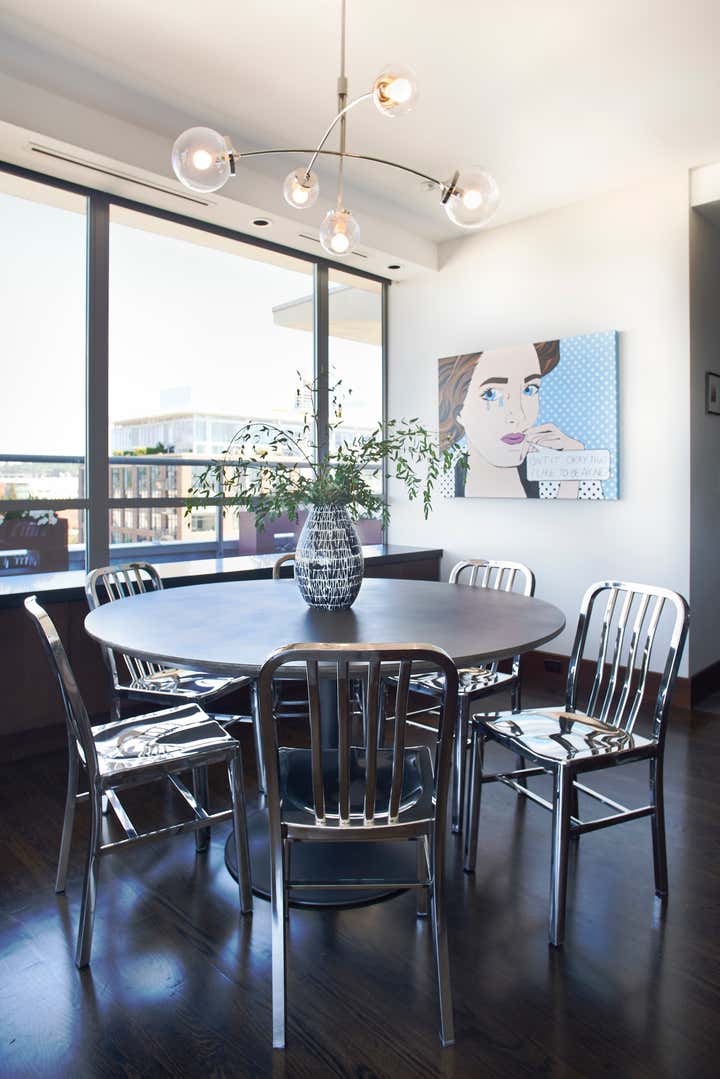 This Belltown bachelor and self-proclaimed audiophile enlisted our help to bring his penthouse condominium to life. The monochromatic palette is filled with style and high design details – from a custom rug to pops of color with the homeowners show poster collection. We layered vintage pieces throughout to make it all that more interesting. Now let’s mix up that martini and put on a record