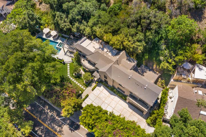 An expansive, modern/eclectic home in the hills of Los Angeles. David Brian Sanders seamlessly mixes contemporary and modern architecture and accents with some familiar traditional home comforts-- Soft chairs with simple, utilitarian design, manicured landscaping, and complimentary textures.