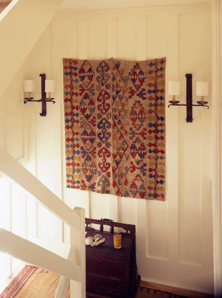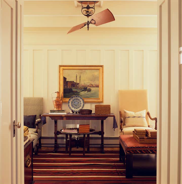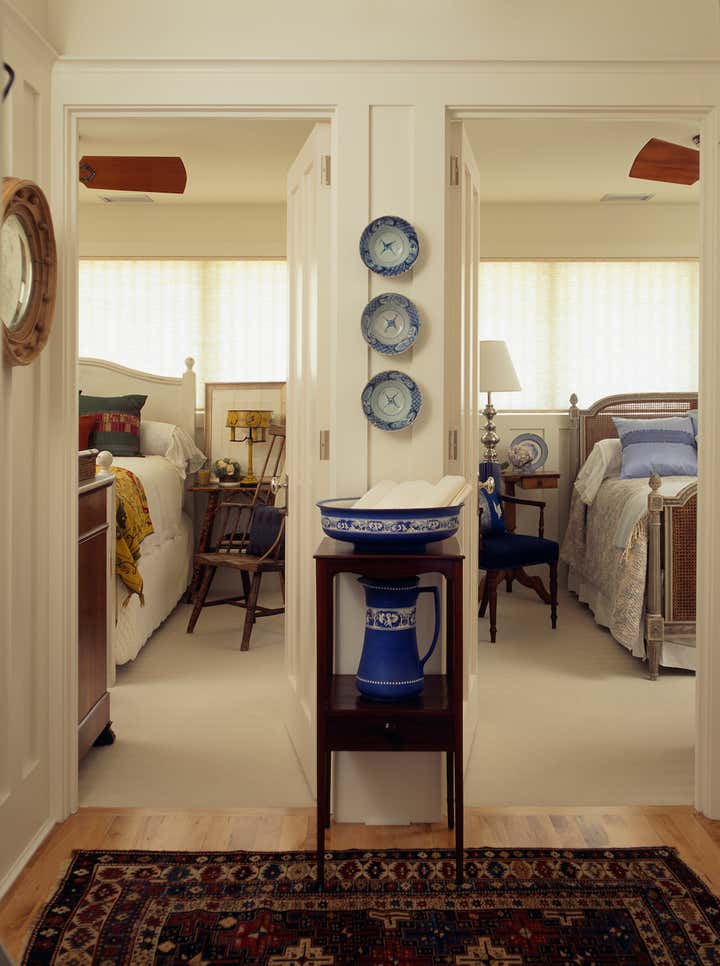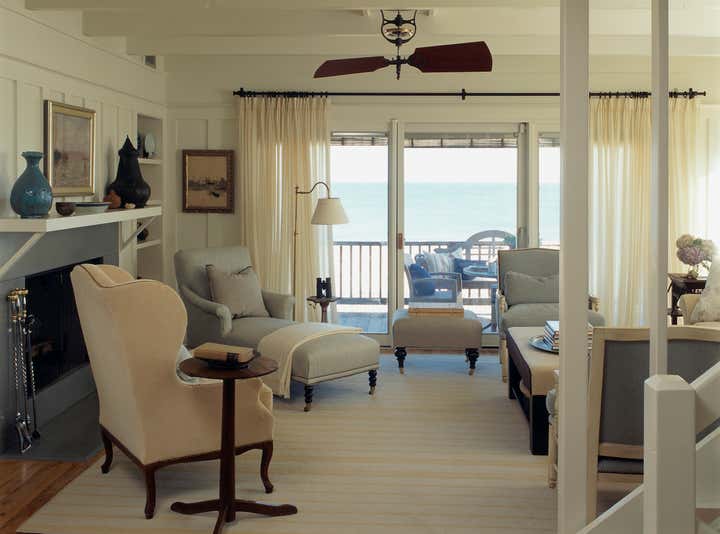 A couple from Washington, DC inherited this Bethany Beach, DE condo with the intention to use it as a family vacation home. The property was a developers idea of what a beach house should be - dark and paneled. The architect Wayne Good wanted to refer back to a turn of the century beach house. Hajj's goal was to bring in a light feel, something that felt like the beach, but with a sense of richness that reflected the clients love for travel. To achieve this look, Hajj's interior design studio came up with a plan that opened the cottage up, brought in more light and most importantly made it feel restful, relaxing and accessible.