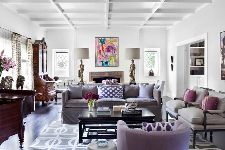This project involved an extensive remodel to a 1930’s Tudor. We lightened and brightened the entire house - inside and out - by raising ceilings, tearing down walls, redoing the existing kitchen, building a prep kitchen, and creating a lot of open, family space. Rooms were kept spacious and a sense of luxury was a priority. The exterior of the house changed completely when we neutralized the existing Tudor palette of black and white. The palette inside is primarily light and neutral, with unexpected pops of color thrown in – like lavender, pink, olive and turquoise. Deep, cozy upholstery, extensive built-in cabinetry and vintage touches appear throughout.
