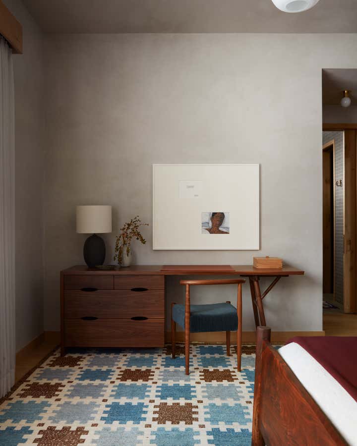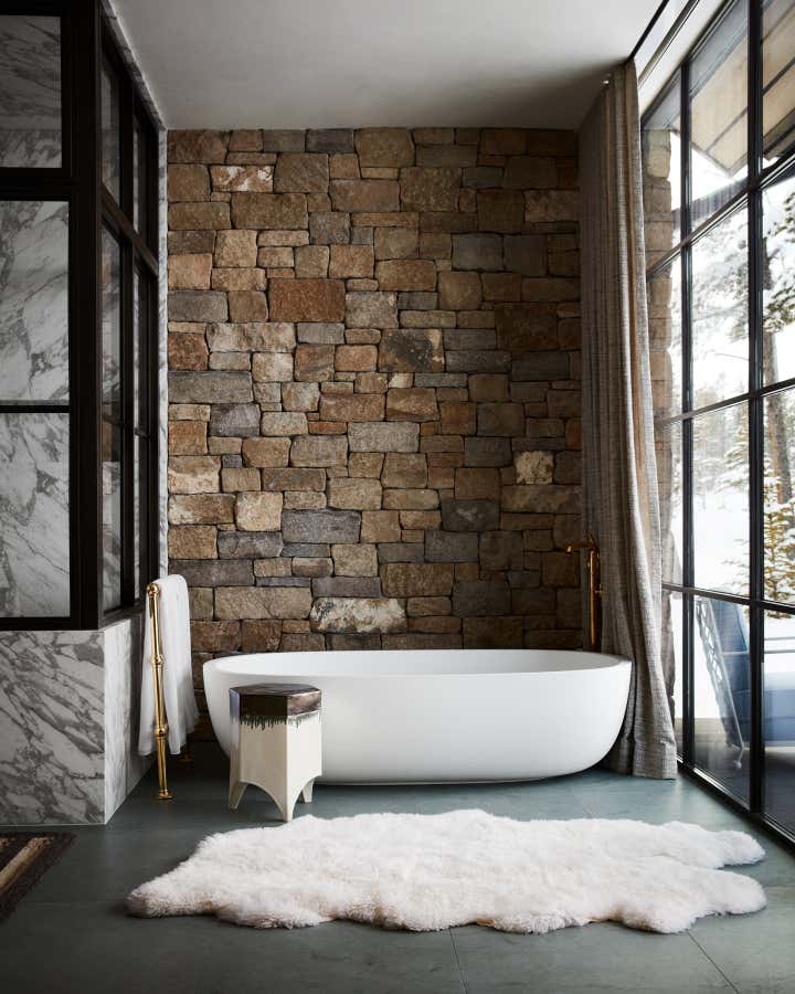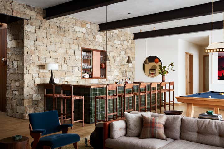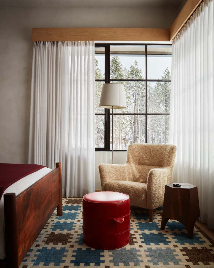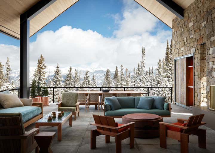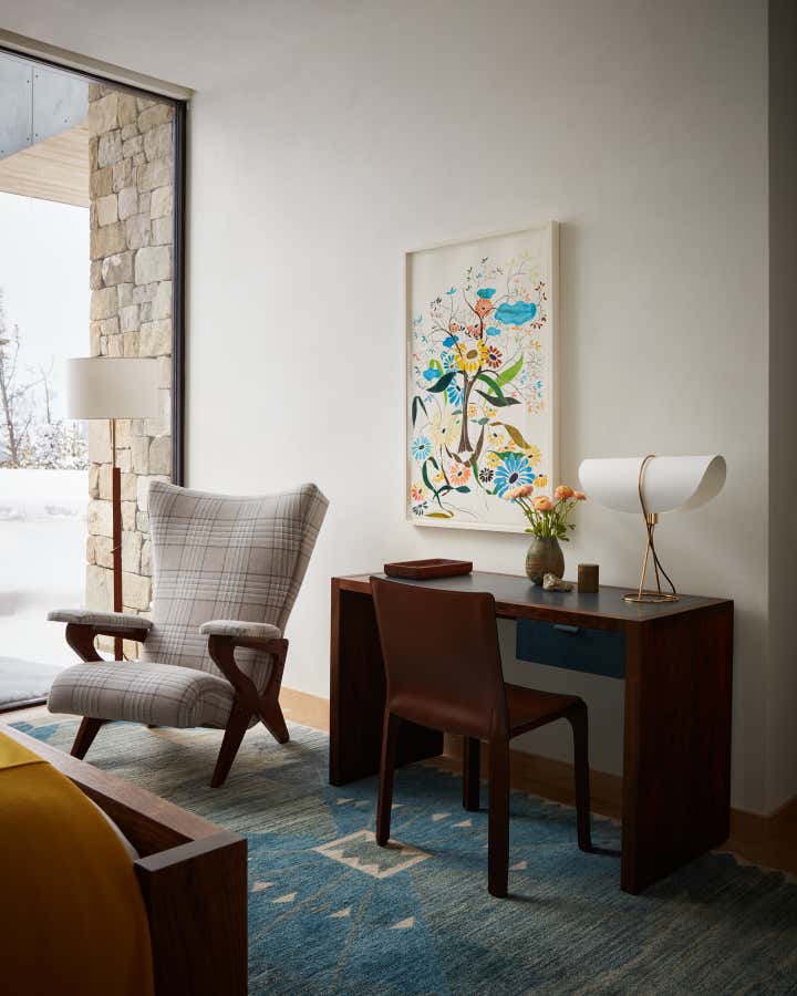 The 10,000 sq. foot, seven-bedroom house at the very top of Andesite Ridge in Big Sky Montana, was purchased by our client while it was under construction. They fell in love with the incredible views, but the plans in place didn’t reflect what the client wanted for their vacation home, so we were given a clean slate to completely redesign the interiors. They wanted the house to be highly functional, for family vacations with their four teenage sons, but also for it to feel refined and beautifully considered. We only kept in place several walls made from a local travertine and added natural oak floors, walnut millwork, Domingue plaster walls and ceilings, and bronze hardware by Van Cronenburg throughout.