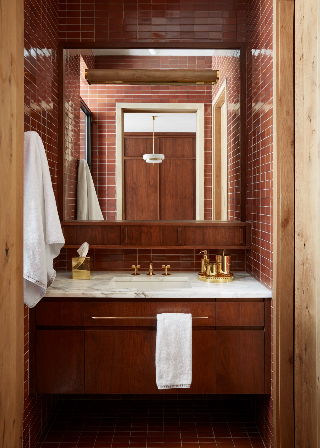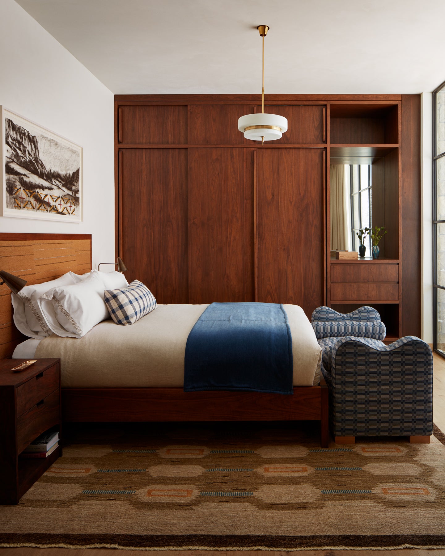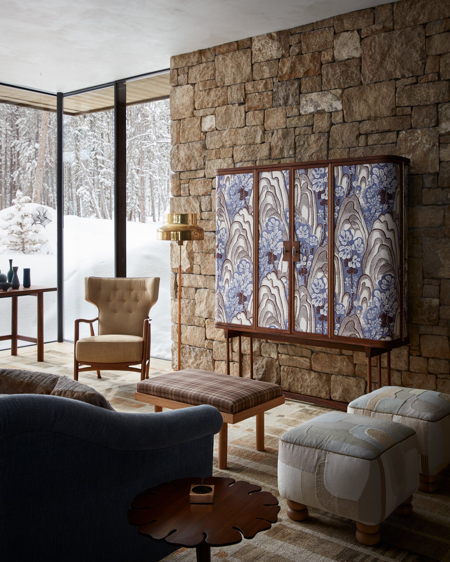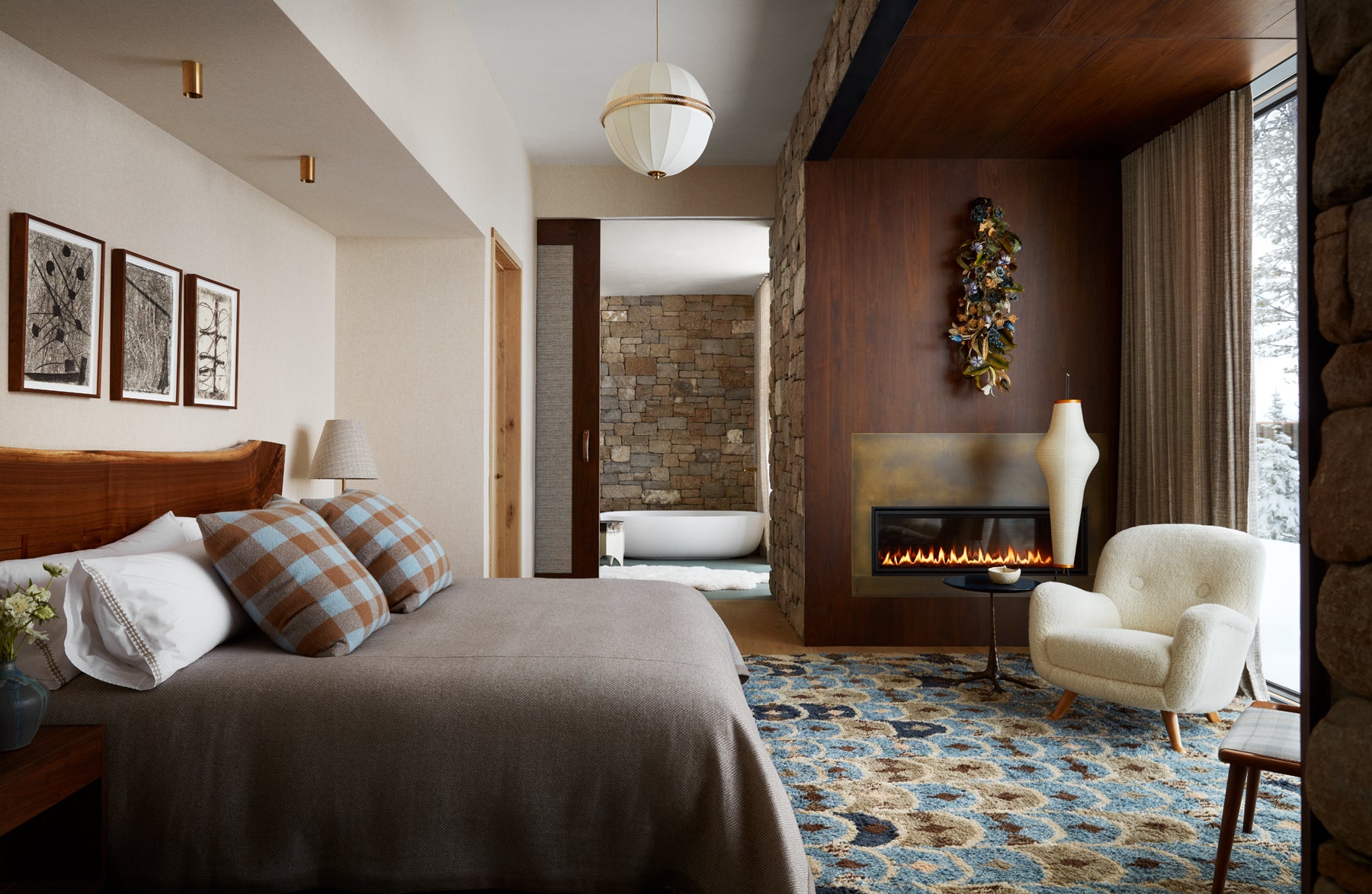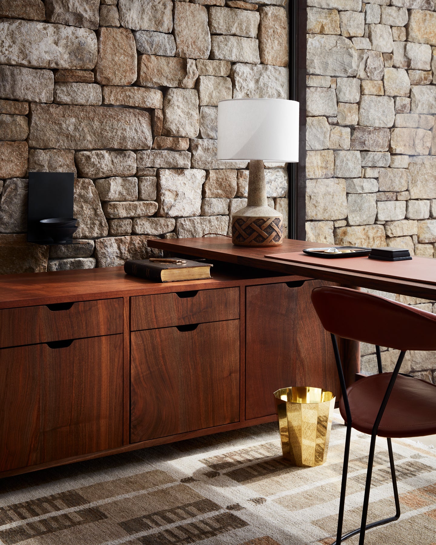 The 10,000 sq. foot, seven-bedroom house at the very top of Andesite Ridge in Big Sky Montana, was purchased by our client while it was under construction. They fell in love with the incredible views, but the plans in place didn’t reflect what the client wanted for their vacation home, so we were given a clean slate to completely redesign the interiors. They wanted the house to be highly functional, for family vacations with their four teenage sons, but also for it to feel refined and beautifully considered. We only kept in place several walls made from a local travertine and added natural oak floors, walnut millwork, Domingue plaster walls and ceilings, and bronze hardware by Van Cronenburg throughout.