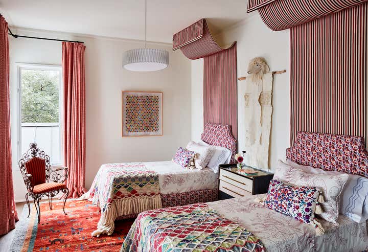 "CW Star Jensen Ackles Invites AD Inside His Family Home in Austin," by Kathryn Romeyn, ArchitecturalDigest.com ... "There’s a lot going on inside the Lake Austin home of actors Jensen and Danneel Ackles—a lot of color, a lot of texture, endless elements begging their stories to be told. ... "Jensen and Danneel enlisted Austin architect Paul Lamb and interior designer Fern Santini to kickstart what ended up being a very collaborative renovation. At their initial meeting with Santini, the potential for partnership was evident when she pulled up in an auspicious 1967 E-Type Jaguar. 'I mean, it’s just like the coolest thing ever,' says Jensen of the car, which was made in the same year Danneel had said she wanted to recreate in the Austin home so as to pay tribute to the Laurel Canyon bungalow where the couple once lived. 'It was a magical little place. So when Fern pulls up in that car ... We just bonded over music and a love of that time period and had our vision right off the bat.' ... "'It was imperative that the house express the Ackleses—young, bold, and irreverent,' Lamb says. 'It had to be full of humorous and endearing eccentricities and it needed to radiate a comforting yet exotic familiarity.' Santini calls it 'a cross between Joni Mitchell and the Serge Gainsbourg–Jane Birkin thing that was going on in Paris at the same time. It’s very hip but it’s low-key.' ... “'It goes to that having a history, having a story,' says Jensen, who, with his wife, selects works based on a gut feeling as opposed to popularity or perceived value. It’s the same way Danneel approached design. 'We have so many friends who come into the house and are like, ‘Oh my gosh, I love this—it’s so crazy and unexpected. But man, I would have never picked out all these things, and I wouldn’t have been brave enough to do it!’' she says. 'I’ve heard this over and over, and I wish more people would just be brave and go with what makes them happy.'"