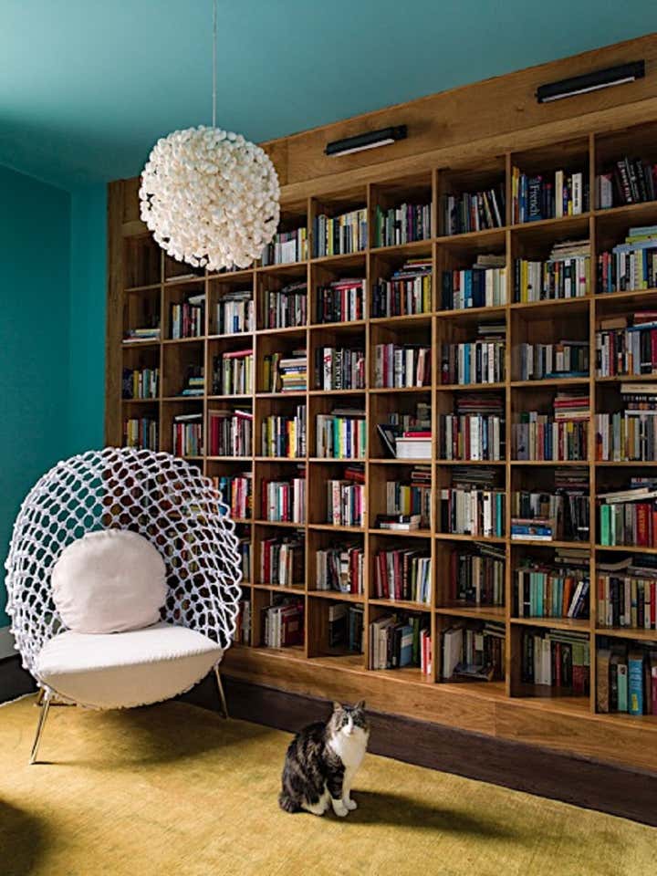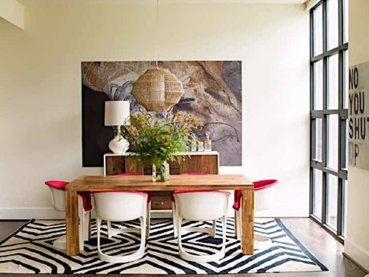 A simple city apartment with a mix of MidCentury and new pieces, the occasional shot of saturated color and our client’s art collection full of quirky juxtaposition. A massive blown up photo of ancient French cave paintings is adjacent to a “NO YOU SHUT UP PAINTING” showcasing our client’s varied taste in art and her ironic sense of humor. A custom extra deep built-in book shelf stores her extensive book collection and creates interest in a once under-utilized bedroom.