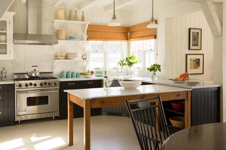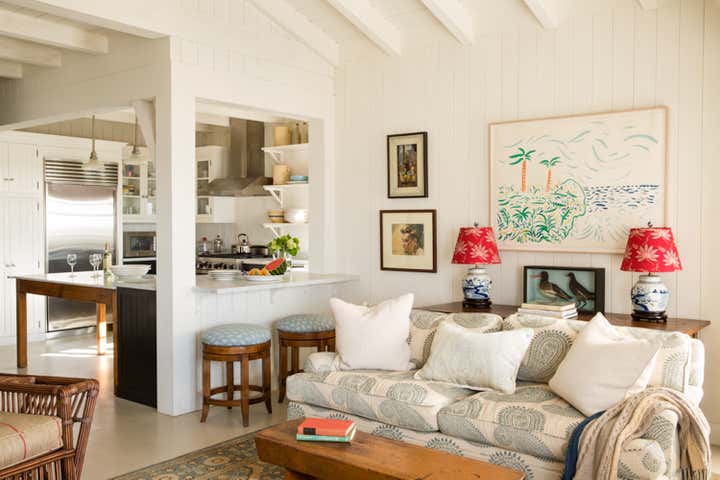 It was a real pleasure to renovate this 1940s shingled beach cottage into a fresh, sparkling, weekend destination on a California sandy beach. With a nautical, Nantucket vibe, the small house came to life with painted woodwork and floors, and a casual grouping of antique, flea market, and new reproduction furnishings. All the woodwork was added to the interior. Walls were removed to give the house an open flow. It captures a sense of old world, simple post and beam construction with plenty of bead board.