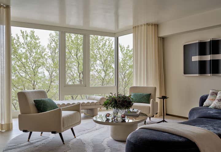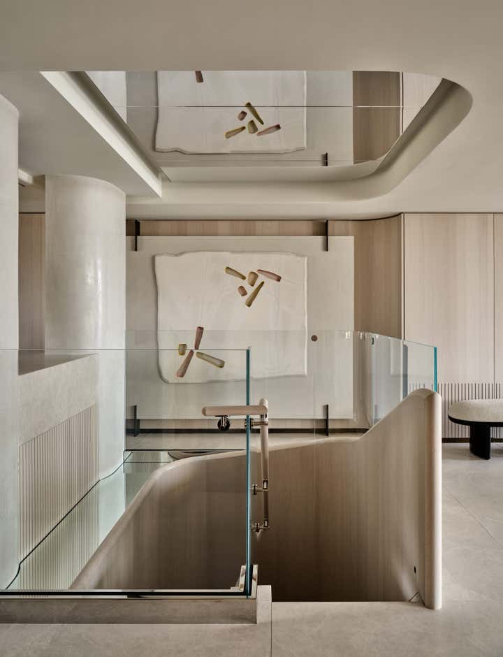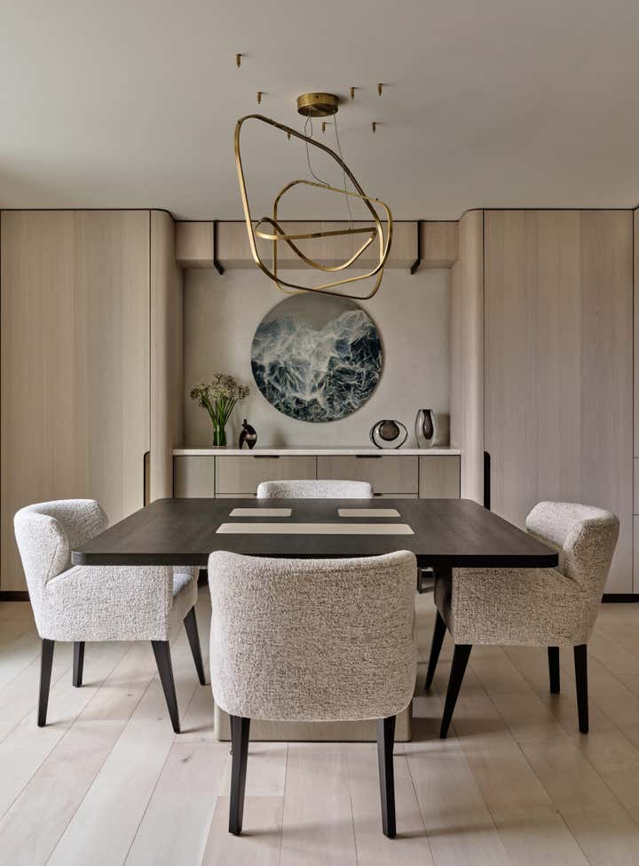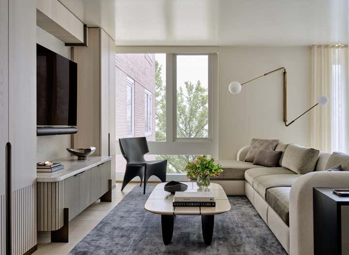 Workshop/APD reimagined this Cambridge duplex as a light-filled, contemporary residence. A full renovation opened the floor plan and enlarged the stair, creating a sculptural yet functional space for clients seeking a modern, seamless living. Throughout the apartment, soft curves and custom millwork bring a sense of continuity to a once-compartmentalized layout. A refined palette of white oak, antique brass, and polished plaster grounds the design in warmth, while river views and natural materials tie the interiors to the landscape beyond.