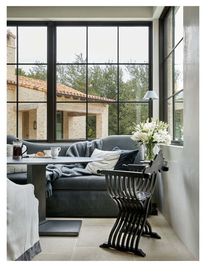 “There’s a little bit of magic to this house,” designer Marcus Mohon says of the southern European-inspired home he decorated for a couple in Austin.”It makes you want to sit down and linger.” Overlooking Barton Creek, the spacious abode exudes approachable old-world elegance through cozy furnishings and mottled-stone walls. “Every space is stylish but comfortable,” the designer says. “We eliminated the concepts of ‘formal’ and ‘informal’ from the interiors.”
