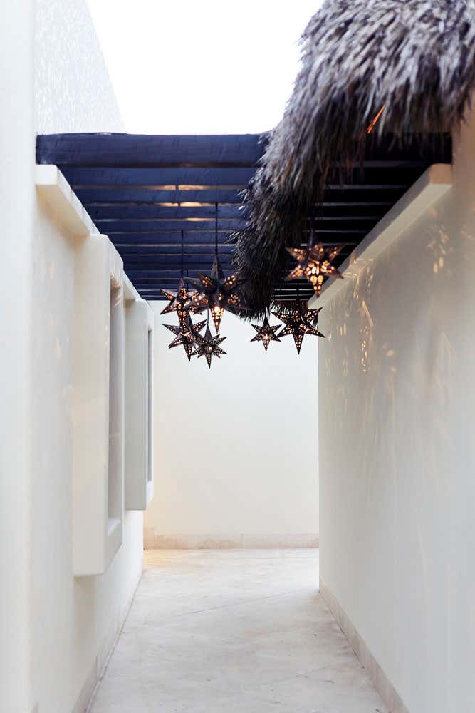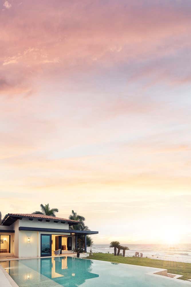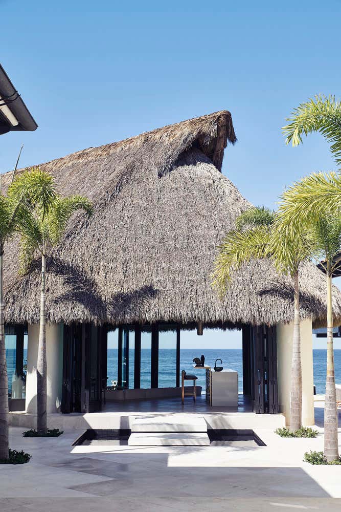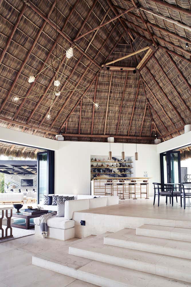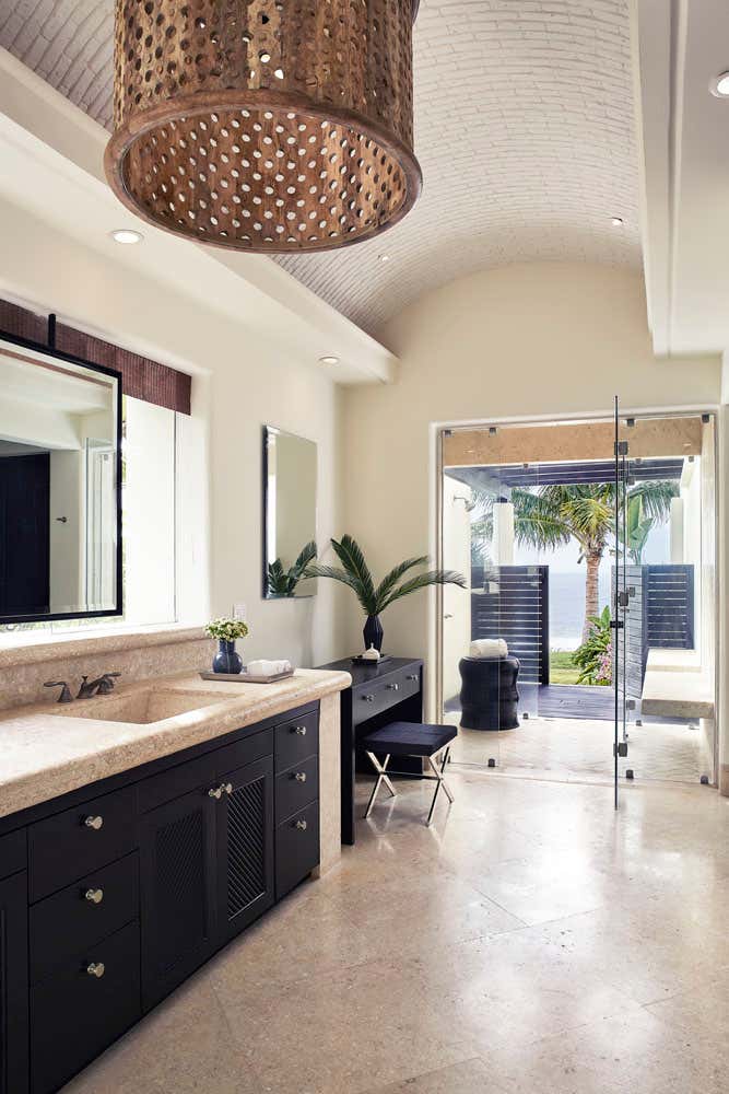 Casa Fortuna was recently completed for an LA based developer who built a sizable portion of the area where Punta Mita Estates, Four Seasons and St. Regis resorts are now located. Casa Fortuna is his vacation home which was built 12 years ago and required a mass remodel completed in 2018. Since the mass development of the Los Cabos area, Punta Mita. The client wanted to take the house from being a traditional Mexican style retreat to a more contemporary beach house with a boutique hotel aesthetic. The house, approximately 15,000 square feet, is composed of seven different structures and sits on the bluff overlooking Marietas Islands. As the original developer of the area, the client saved the best lot in the area for himself and the property’s views are unrivaled. The getaway now contains custom lighting by Uri Daviliier of Neptune Glassworks, the lighting extraordinaire responsible for all the lighting in downtown LA’s ultra chic restaurant, OTIUM. Unique art pieces were commissioned from emerging LA, NY and Mexico based artists. The exterior bar pavilion was added in the renovation as was an upper and lower sand beach.