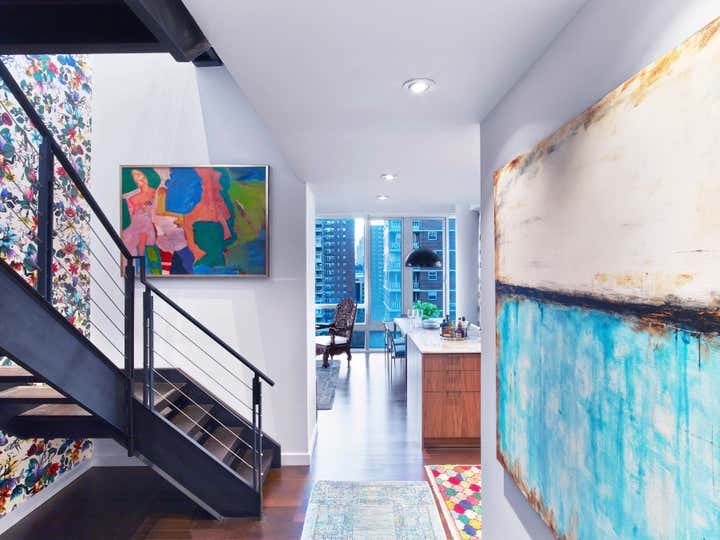 For this Chelsea Interior Design project, the client said to us: “This is going to be our home for a very long time and we want it to reflect us.” And then they added something else, “ Do what you do best.”With that vote of confidence, but more than that–with their complete trust, we began designing their 2800 square foot Chelsea Penthouse.(And soon we began gutting it!) But the thought stayed with us, and throughout the journey we kept asking ourselves, “ What do we do best?” All along the way we found clues to the answer. It was there when we pushed them towards a new level of pattern and color. It was there again when we asked them to consider an evocative mix of antiques (hello, 14th century? Indian chair) with the new (well, relatively new mid-century modern.) And when we asked them to stretch, (okay, leap) out of their comfort zone. (“A flower wall?”) We brought them more variety, gave them more texture, added more layers because each one reflected who they are: equestrian elements–her love for horses; Indian influences– their love of travel, and a room dedicated to extended visits– their love of family.